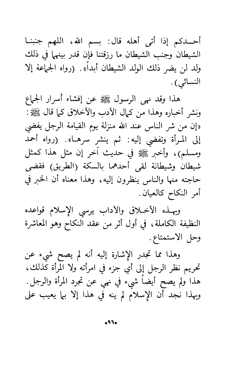 وبهذه الأخلاق والآداب يرسي الإسلام قواعده النظيفة الكاملة، في أول أثر من عقد النكاح وهو المعاشرة وحل الاستمتاع.