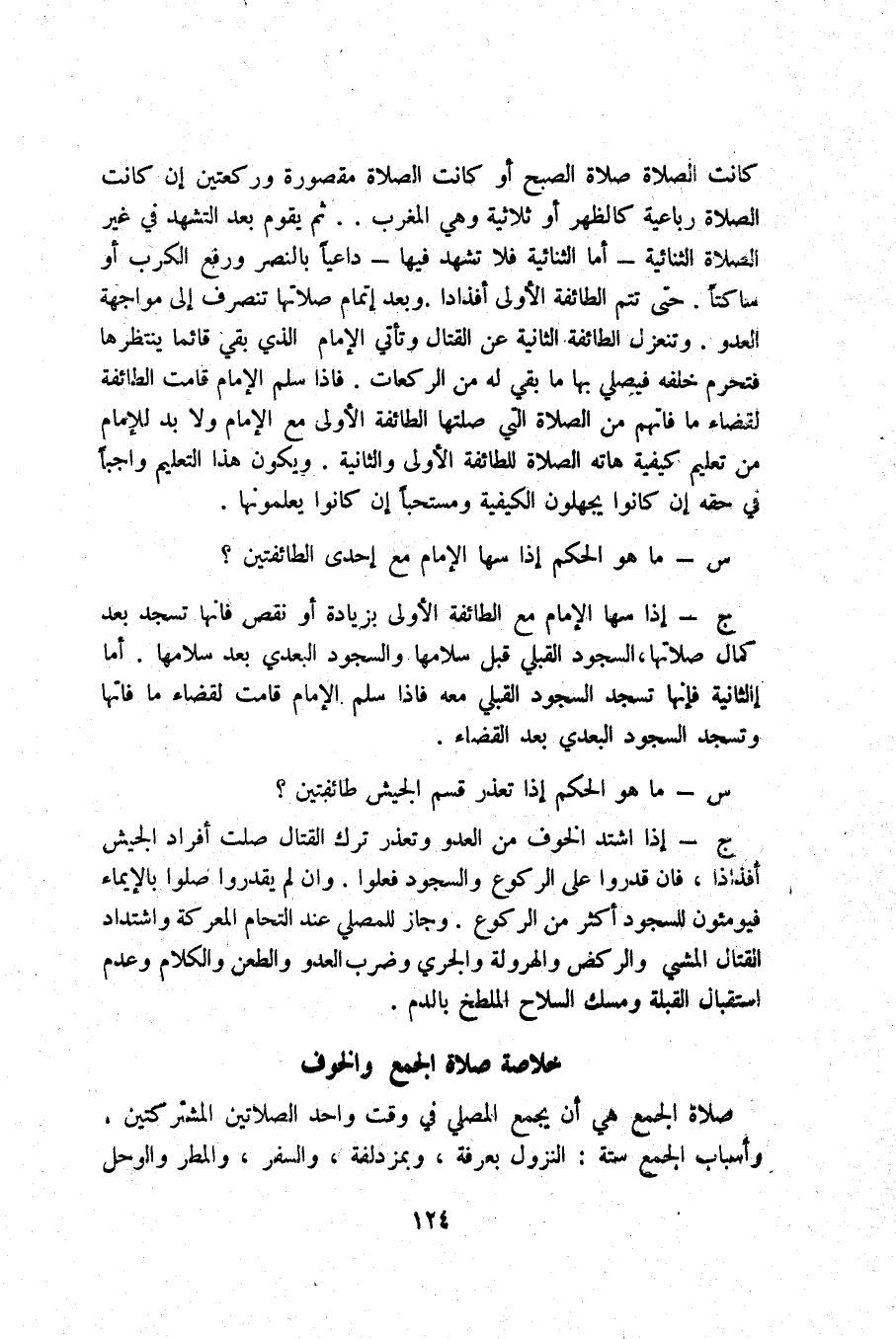 خُلَاصَة صَلَاة الْجمع وَالْخَوْف