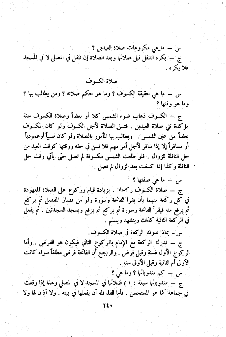 ج _ الْكُسُوف ذهَاب ضوء الشَّمْس كلا أَو بَعْضًا وَصَلَاة الْكُسُوف سنة مُؤَكدَة تلِي صَلَاة الْعِيدَيْنِ