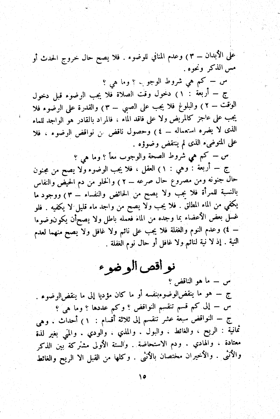 ج _ النواقض سَبْعَة عشر تَنْقَسِم إِلَى ثَلَاثَة أَقسَام 1) أَحْدَاث وَهِي ثَمَانِيَة الرّيح وَالْغَائِط وَالْبَوْل والمذي والودي والمني بِغَيْر لَذَّة مُعْتَادَة وَالْهَادِي وَدم الإستحاضة