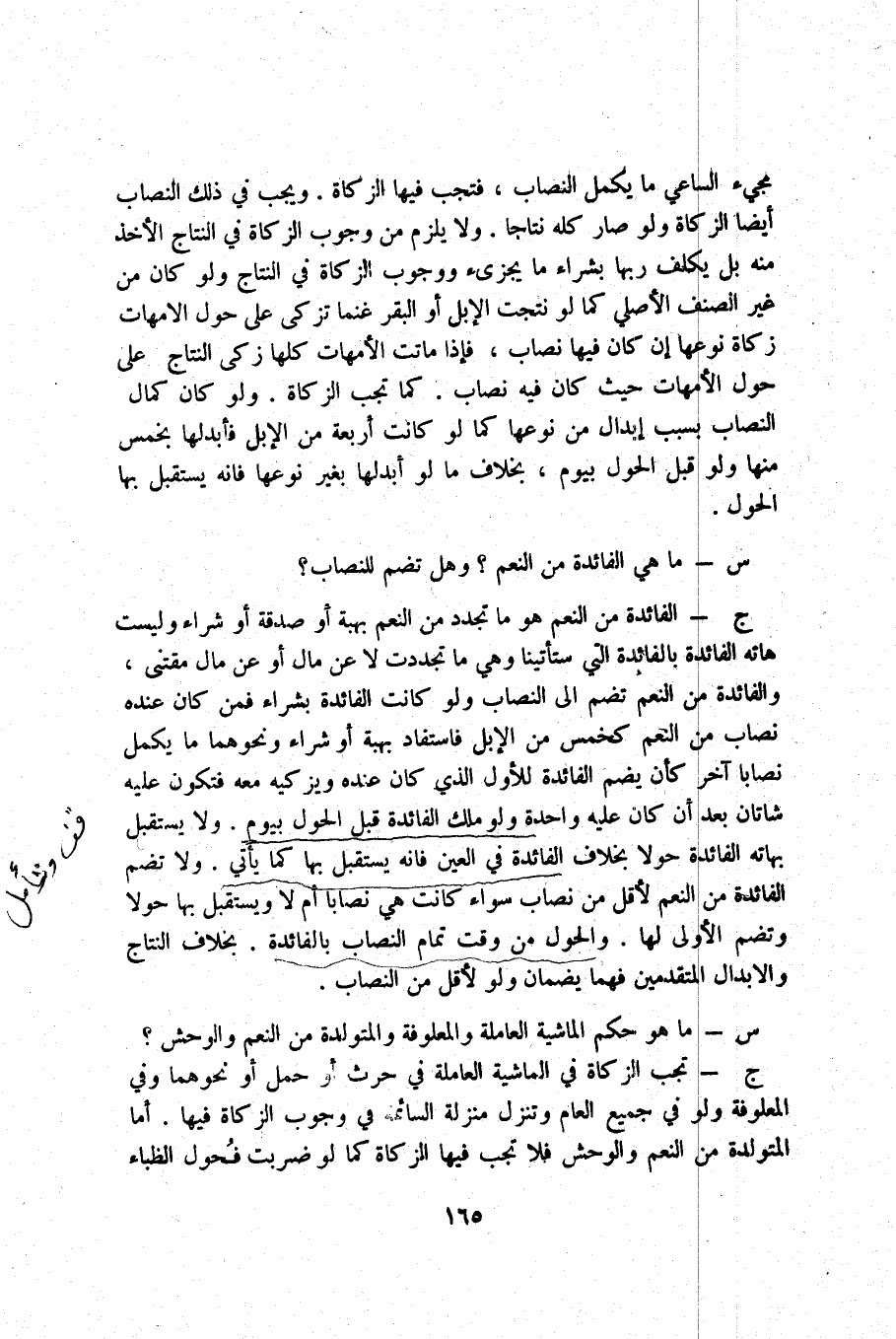 ج - الْفَائِدَة من النعم هُوَ مَا تجدّد من النعم بِهِبَة أَو صَدَقَة أَو شِرَاء وَلَيْسَت هاته الْفَائِدَة بالفائدة الَّتِي ستأتينا وَهِي مَا تَجَدَّدَتْ لَا عَن مَال اَوْ عَن مَال مقتنى والفائدة من النعم تضم إِلَى النّصاب وَلَو كَانَت الْفَائِدَة بشرَاء فَمن كَانَ عِنْده نِصَاب من النعم كخمس من الْإِبِل فاستفاد بِهِبَة أَو شِرَاء وَنَحْوهمَا مَا يكمل نِصَابا آخر كَأَن يضم الْفَائِدَة للْأولِ الَّذِي كَانَ عِنْده ويزكيه مَعَه فَتكون عَلَيْهِ شَاتَان بعد أَن كَانَ عَلَيْهِ وَاحِدَة وَلَو ملك الْفَائِدَة قبل الْحول بِيَوْم