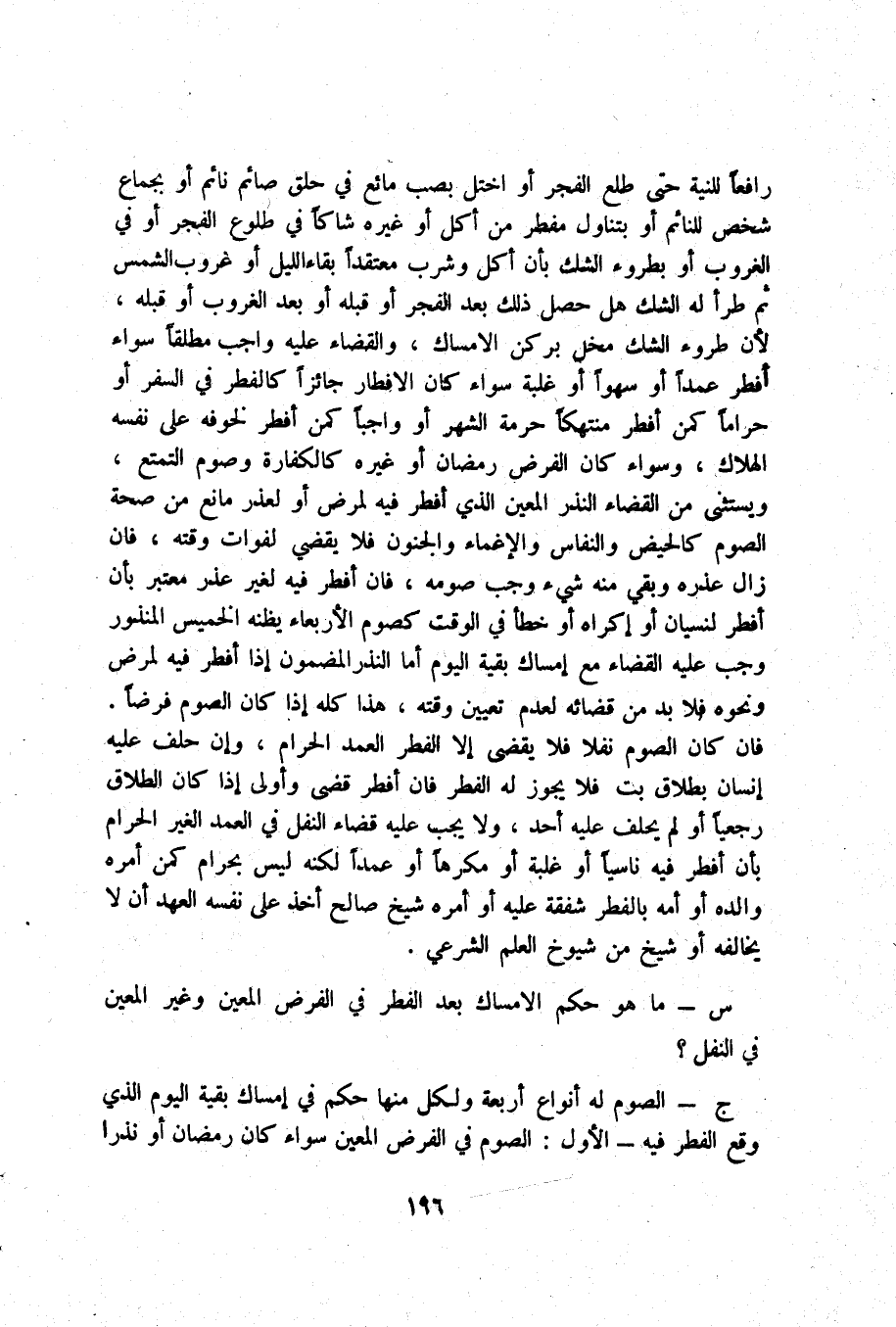 ج _ الصَّوْم لَهُ أَنْوَاع أَرْبَعَة وَلكُل مِنْهَا حكم فِي إمْسَاك بَقِيَّة الْيَوْم الَّذِي وَقع الْفطر فِيهِ الأول الصَّوْم فِي الْفَرْض الْمعِين سَوَاء كَانَ رَمَضَان أَو نذرا