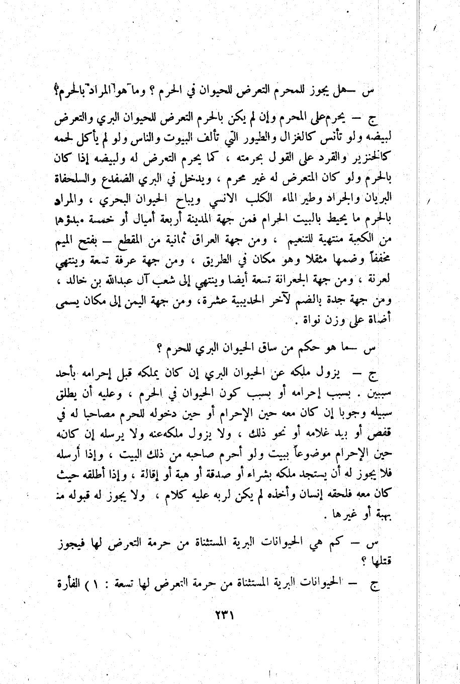س _ هَل يجوز للْمحرمِ التَّعَرُّض للحيوان فِي الْحرم وَمَا هُوَ المُرَاد بِالْحرم