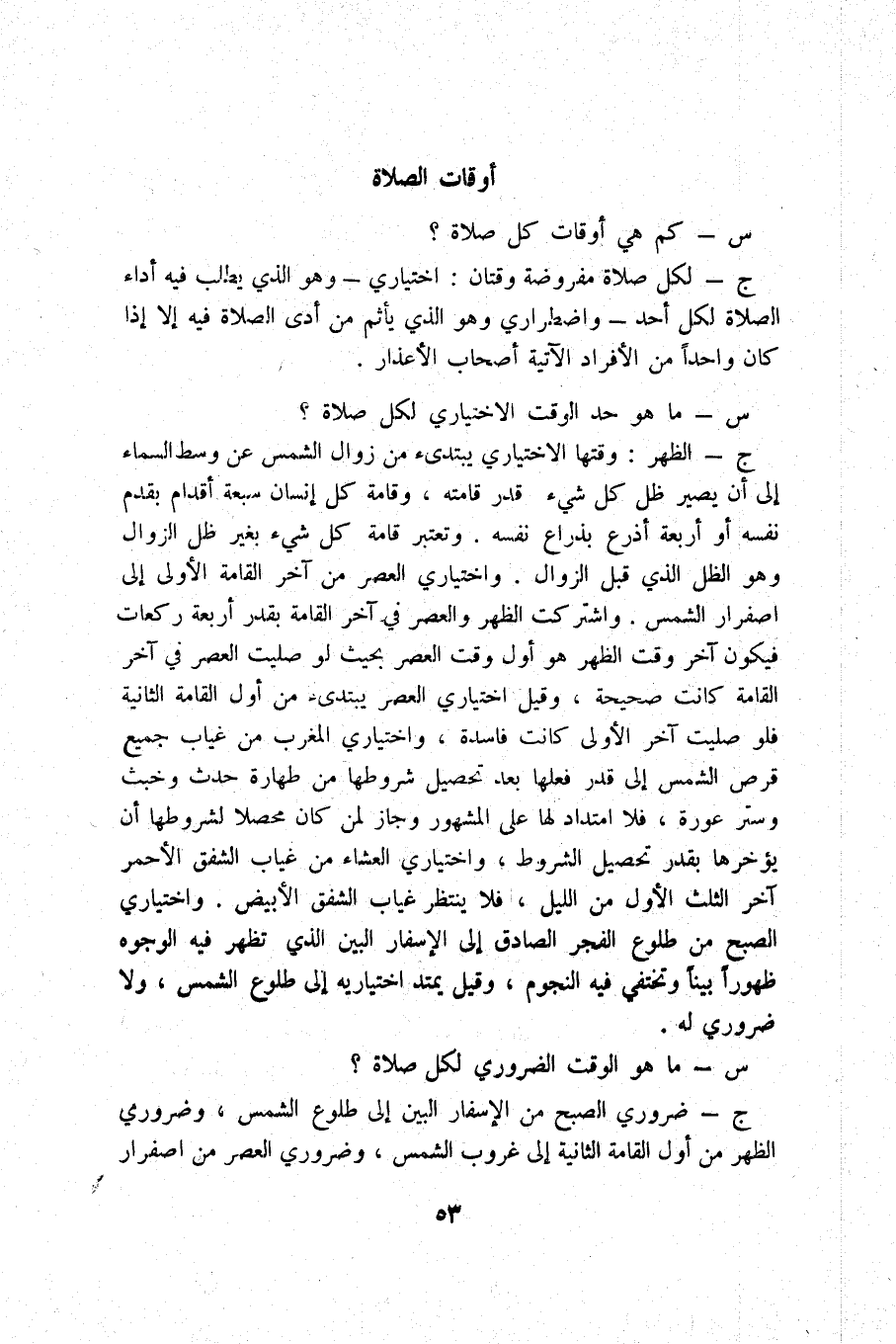 س _ مَا هُوَ الْوَقْت الضَّرُورِيّ لكل صَلَاة