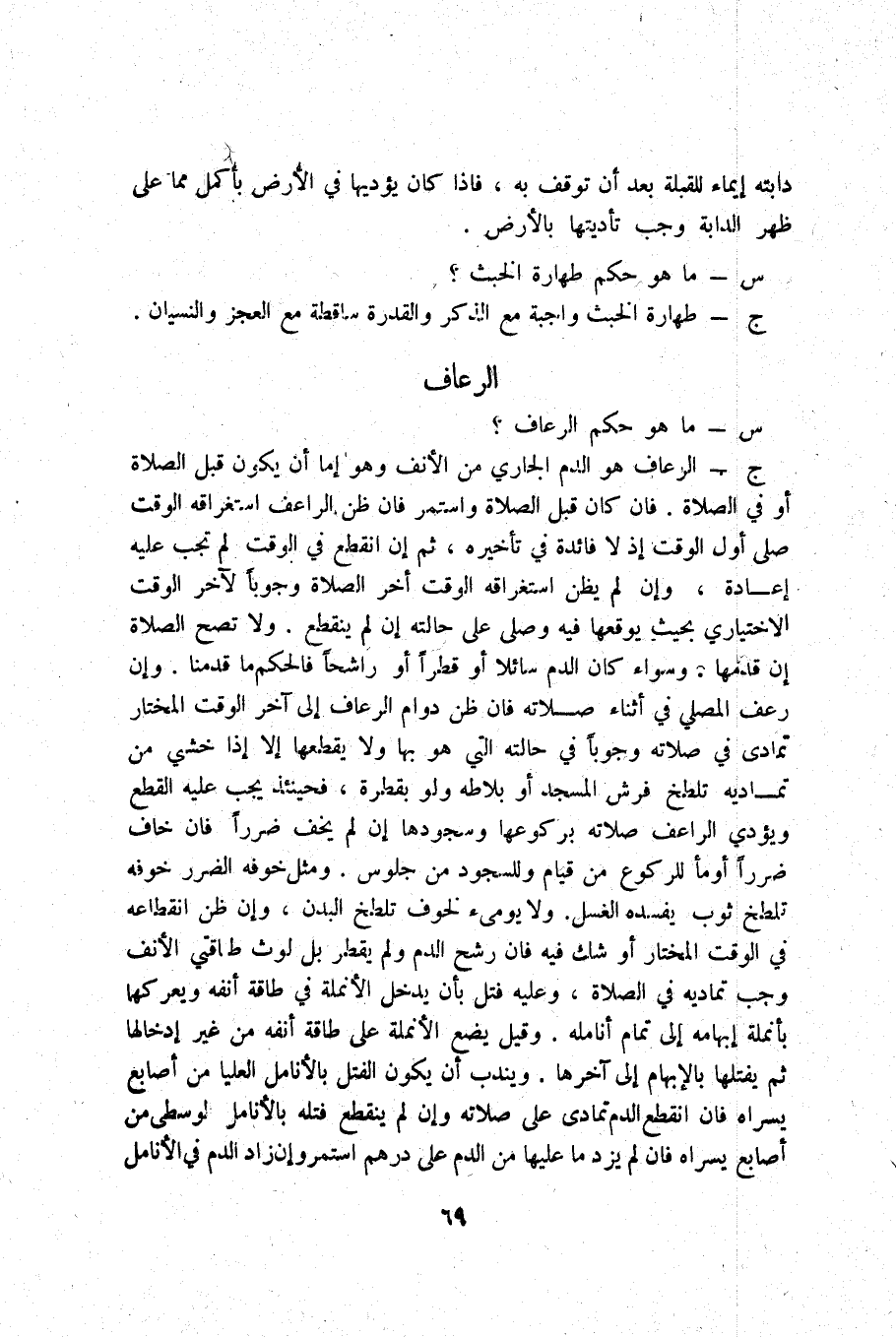ج _ الرعاف هُوَ الدَّم الْجَارِي من الْأنف وَهُوَ إِمَّا أَن يكون قبل الصَّلَاة أَو فِي الصَّلَاة