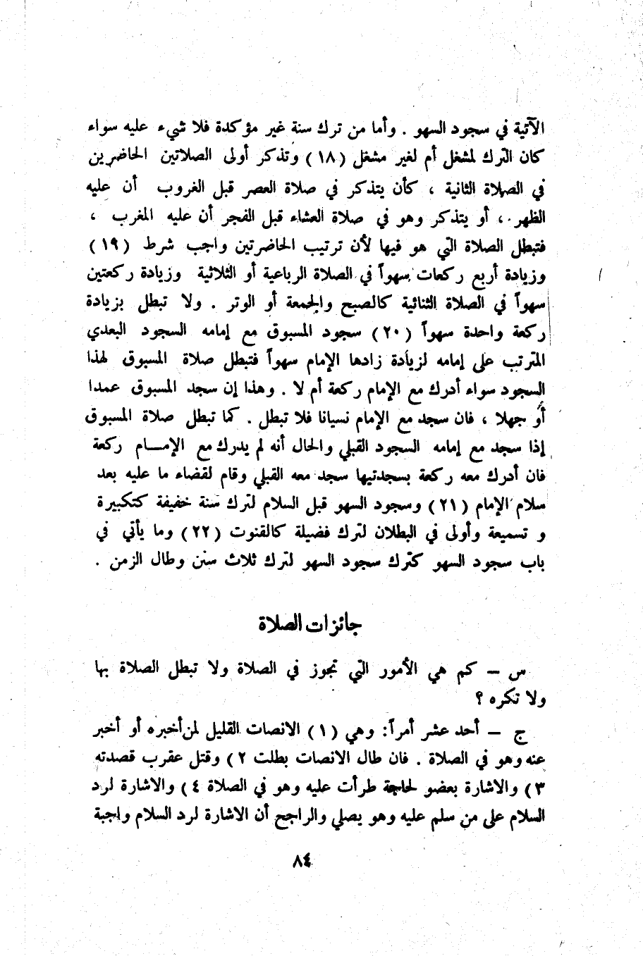 وَلَا تبطل بِزِيَادَة رَكْعَة وَاحِدَة سَهوا (20) سُجُود الْمَسْبُوق مَعَ إِمَامه السُّجُود البعدي الْمُتَرَتب على إِمَامه لزِيَادَة زَادهَا الإِمَام سَهوا فَتبْطل صَلَاة الْمَسْبُوق لهَذَا السُّجُود سَوَاء أدْرك مَعَ الإِمَام رَكْعَة أم لَا
