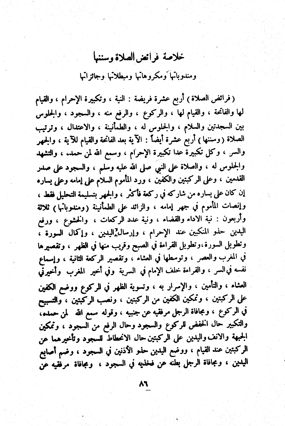 خُلَاصَة فَرَائض الصَّلَاة وسننها ومندوباتها ومكروهاتها ومبطلاتها وجائزاتها