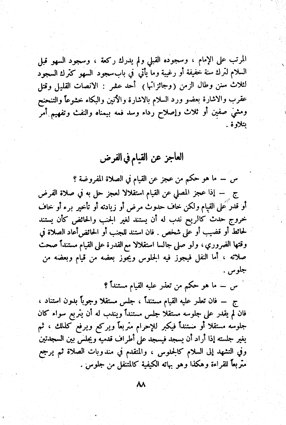 س _ مَا هُوَ حكم من عجز عَن الْقيام فِي الصَّلَاة الْمَفْرُوضَة