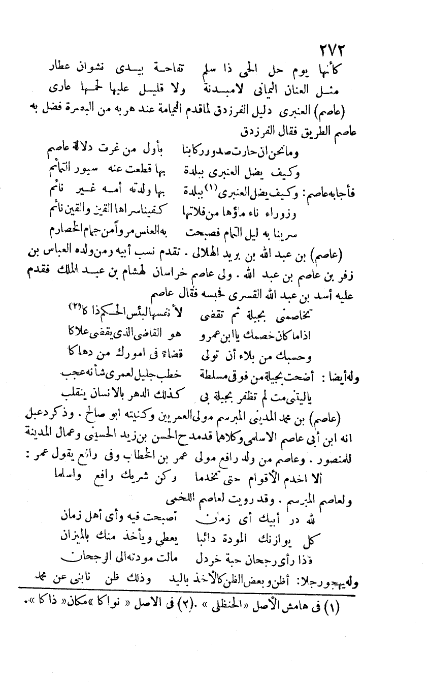عاصم العنبري دليل الفرزدق لما قدم اليمامة عند هربه من البصرة فضل به عاصم الطريق فقال الفرزدق: