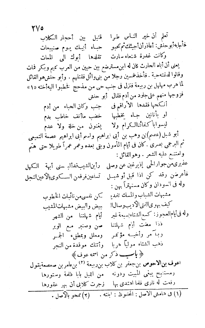 عوف بن الاحوص بن جعفر بن كلاب بن ربيعة بن عامر بن صعصعة يقول: