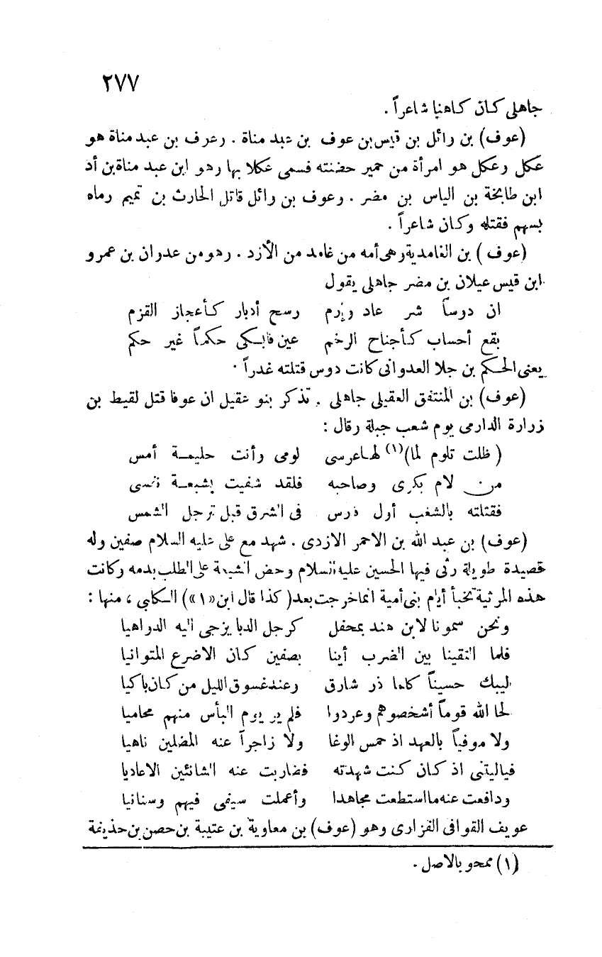 عوف بن الغامدي وهي أمه من غامد من الأزد. وهو من عدوان بن عمرو بن قيس عيلان بن مضر جاهلي يقول: