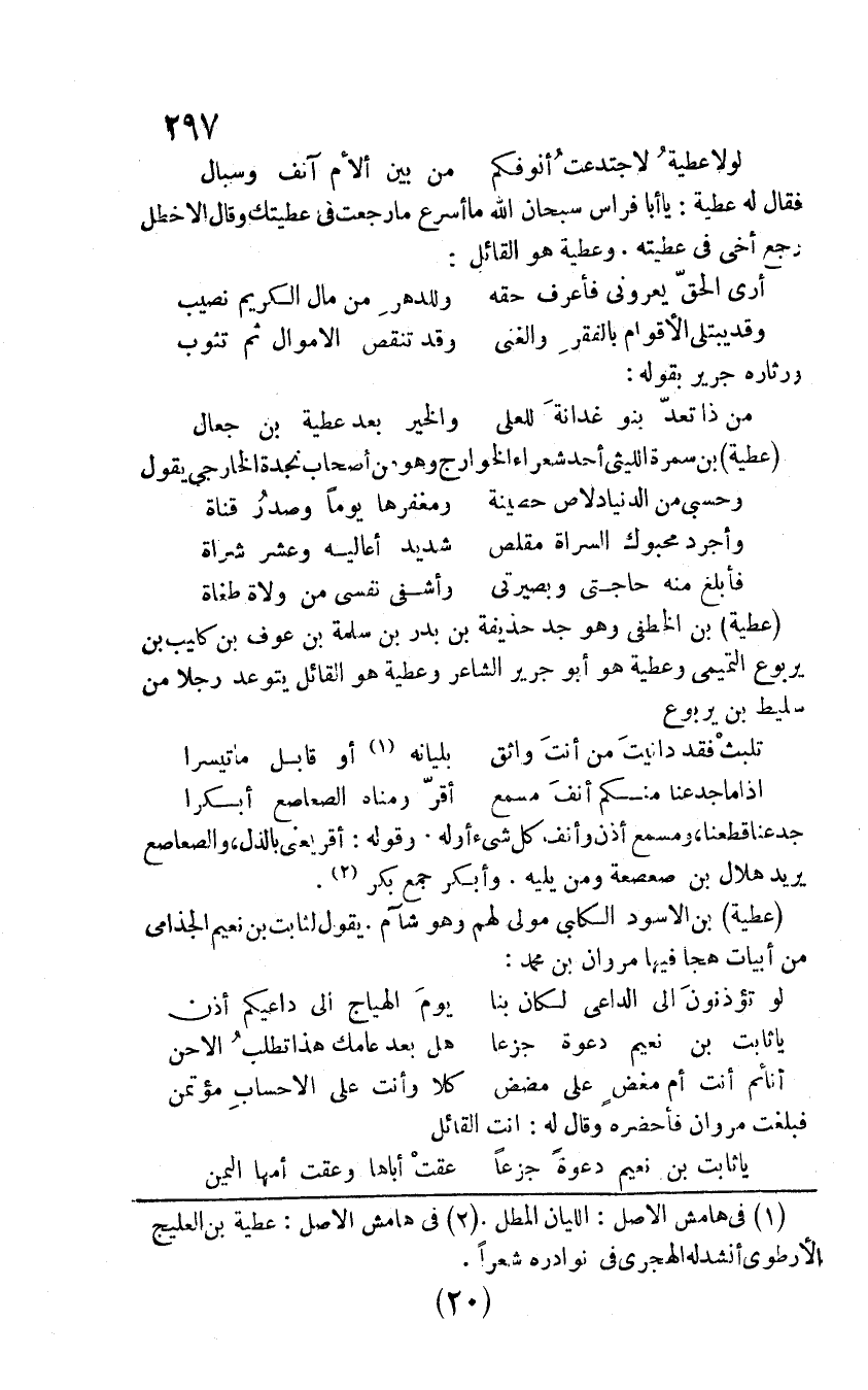 فقال له عطية: يا أبا فراس سبحان الله ما أسرع ما رجعت في عطيتك وقال الأخطل رجع أخي في عطيته. وعطيه هو القائل: