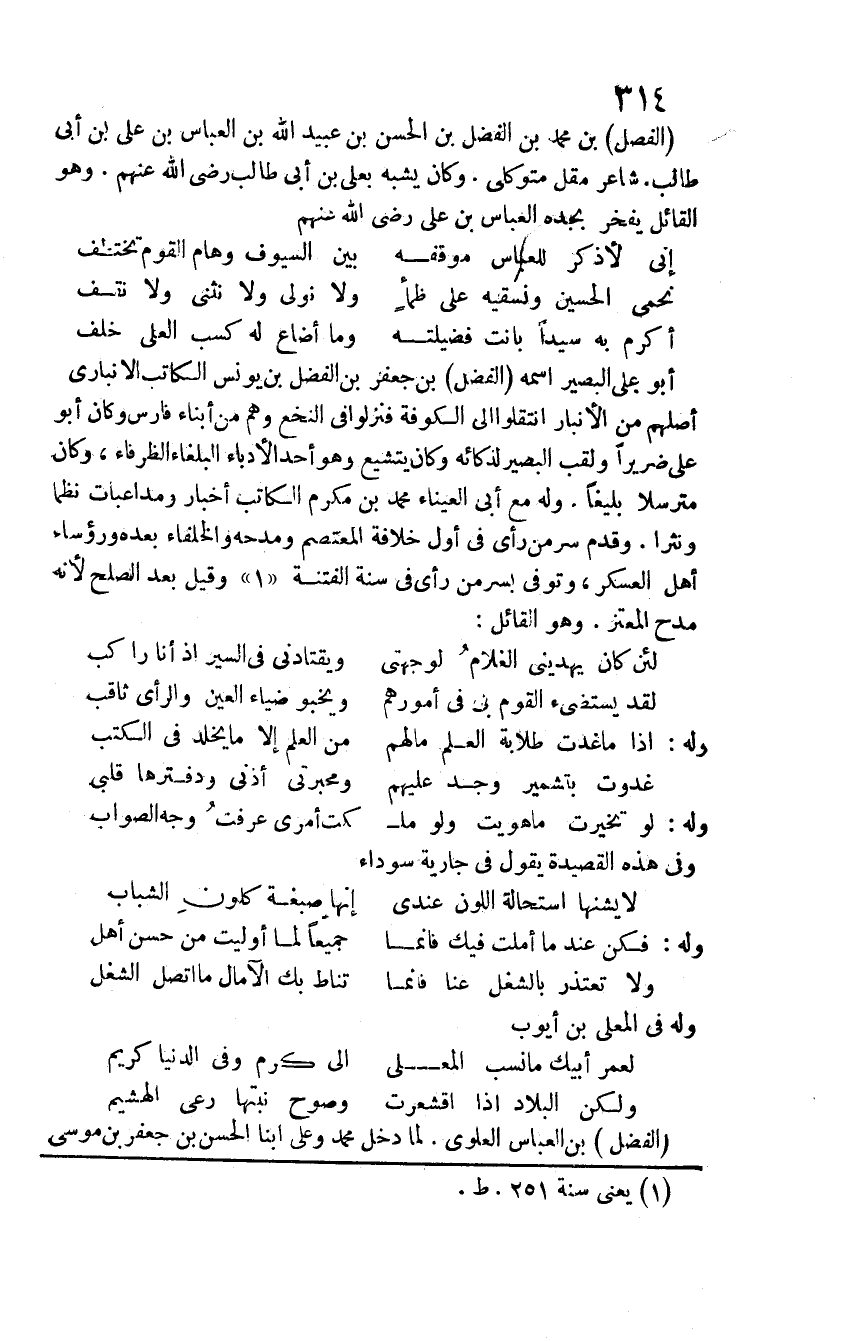 الفضل بن العباس العلوي. لما دخل محمد وعلي ابناً الحسن بن جعفر بن موسى