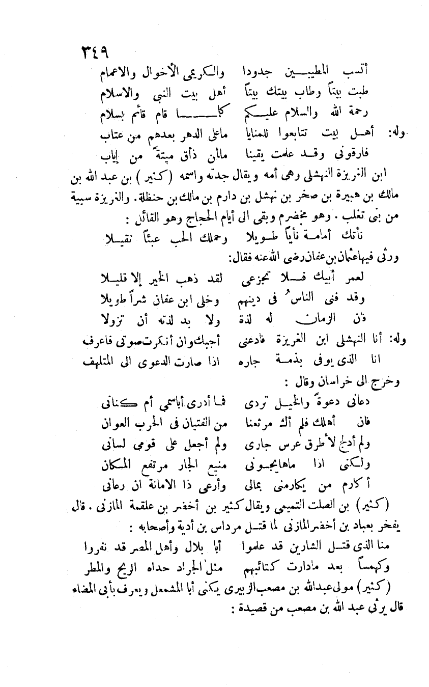 كثير مولى عبد الله بن مصعب الزبيري يكنى أبا المشمعل ويعرف بأبي المضاء قال يرثي عبد الله بن مصعب من قصيدة: