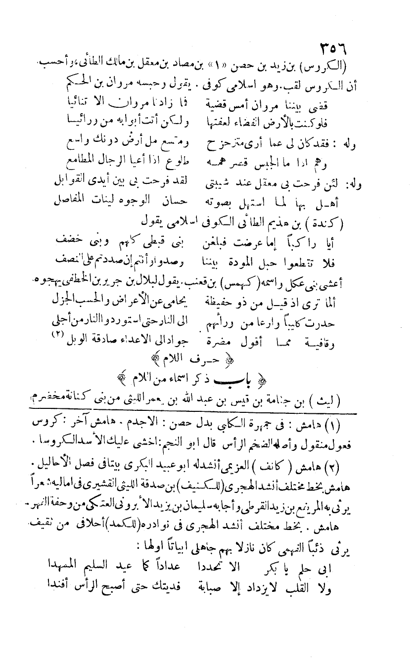 الكروس بن زيد بن حصن بن مصاد بن معقل بن مالك الطائي، وأحسب أن الكروس لقب. وهو إسلامي كوفي. يقول وحبسه مروان بن الحكم: