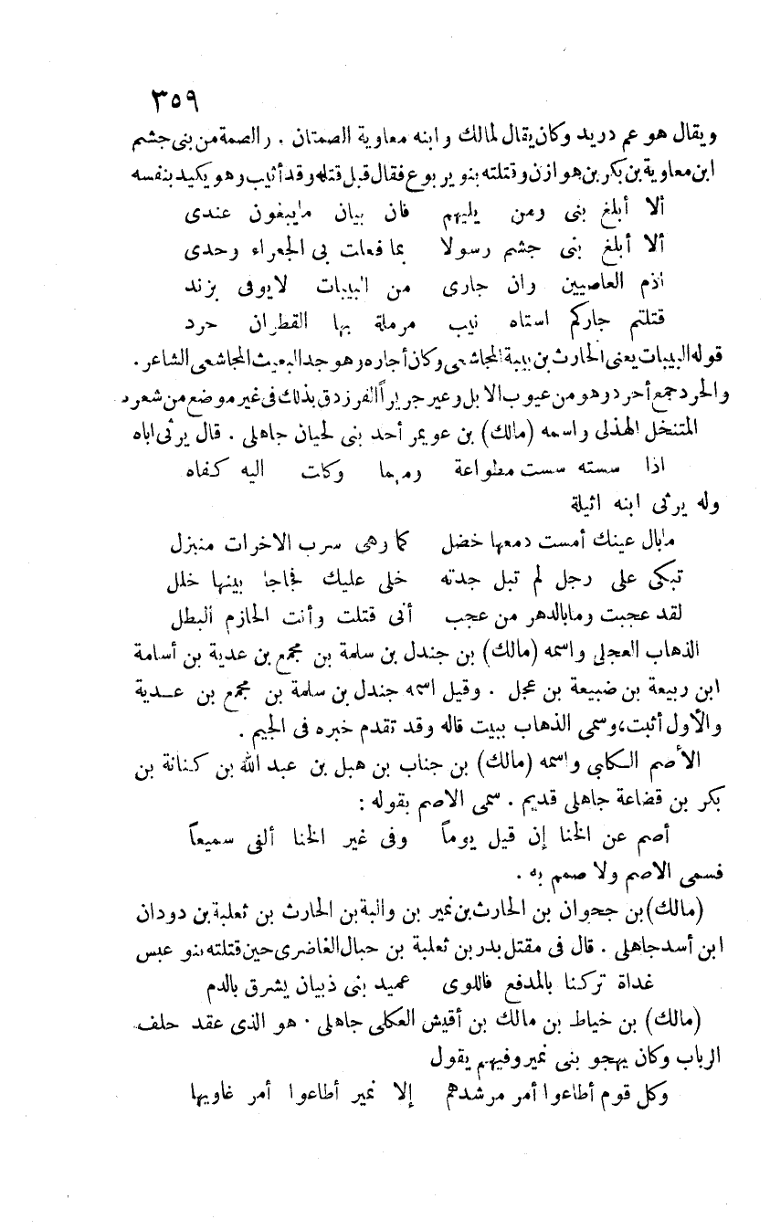 ويقال هو عم دريد وكان يقال لمالك وابنه معاوية الصمتان. والصمة من بني جشم بن معاوية بن بكر بن هوازن وقتلته بنو يربوع فقال قبل قتله وقد أثيب وهو يكيد بنفسه: