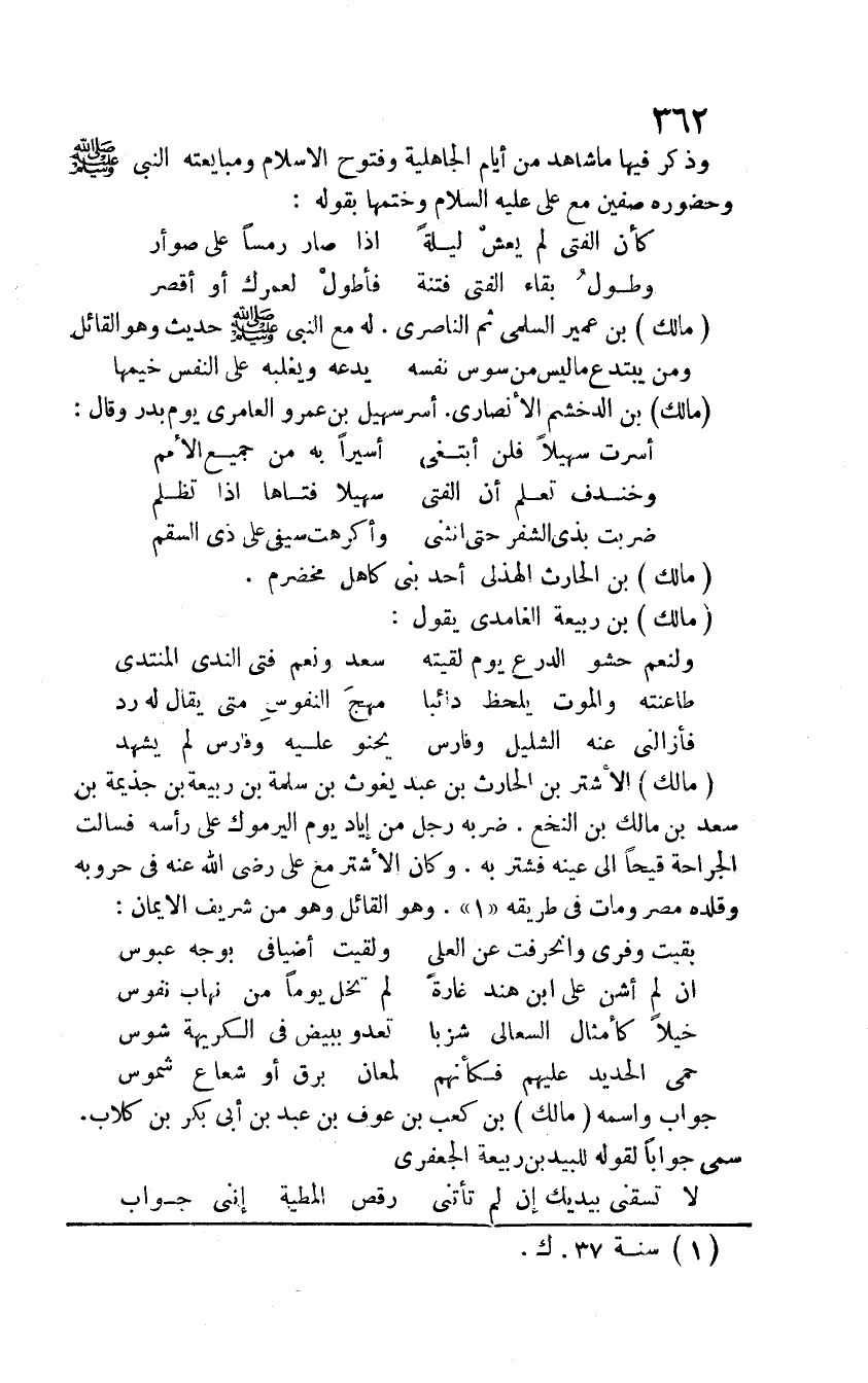 وذكر فيها ما شاهد من أيام الجاهلية وفتوح الإسلام ومبايعته النبي صلى الله عليه وسلم وحضوره صفين مع علي عليه السلام وختمها بقوله: