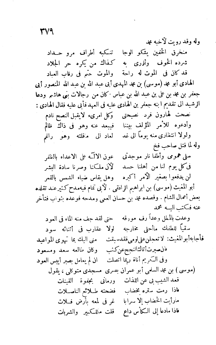 الهادي أبو محمد موسى بن محمد المهدي أبي عبد الله بن عبد الله المنصور أبي جعفر بن محمد بن علي بن عبد الله بن عباس. كان من رجالات بني هاشم ودعا الرشيد إلى تقديم ابنه جعفر بن الهادي عليه في العهد فأبى عليه فقال الهادي: