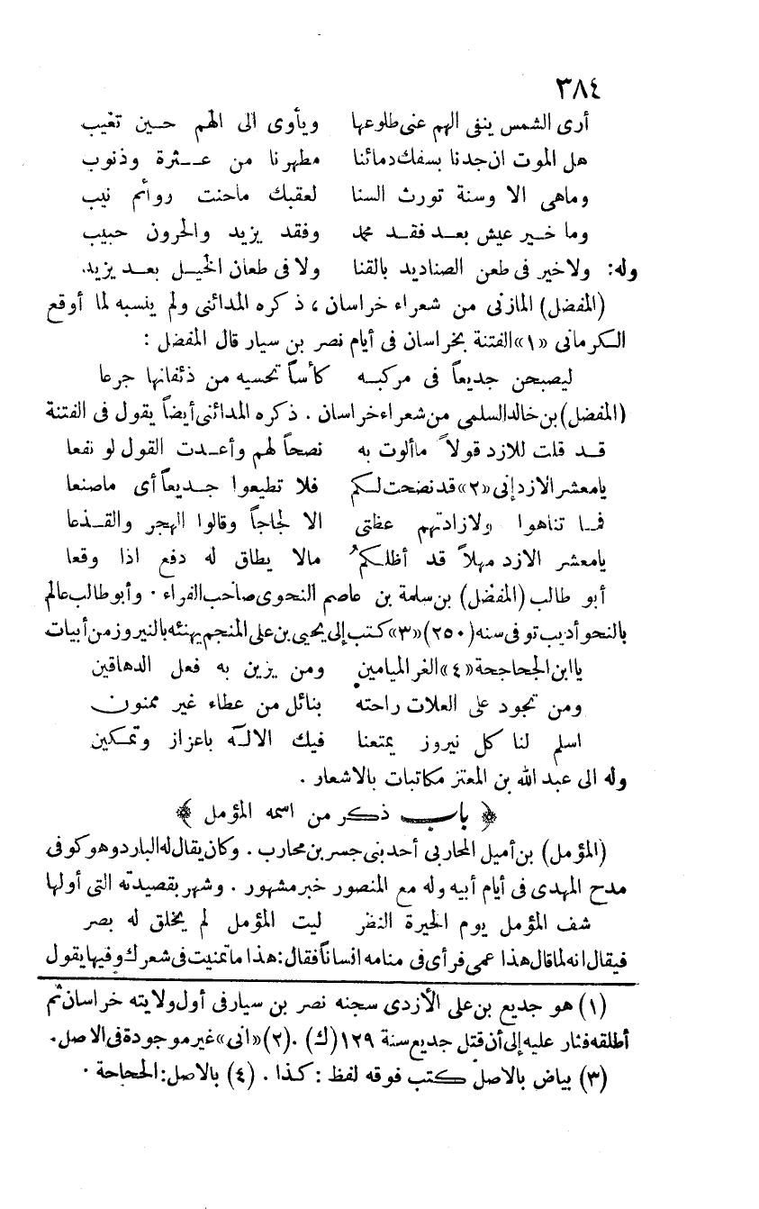 المفضل بن خالد السلمي من شعراء خراسان ذكره المدائني أيضاً يقول في الفتنة: