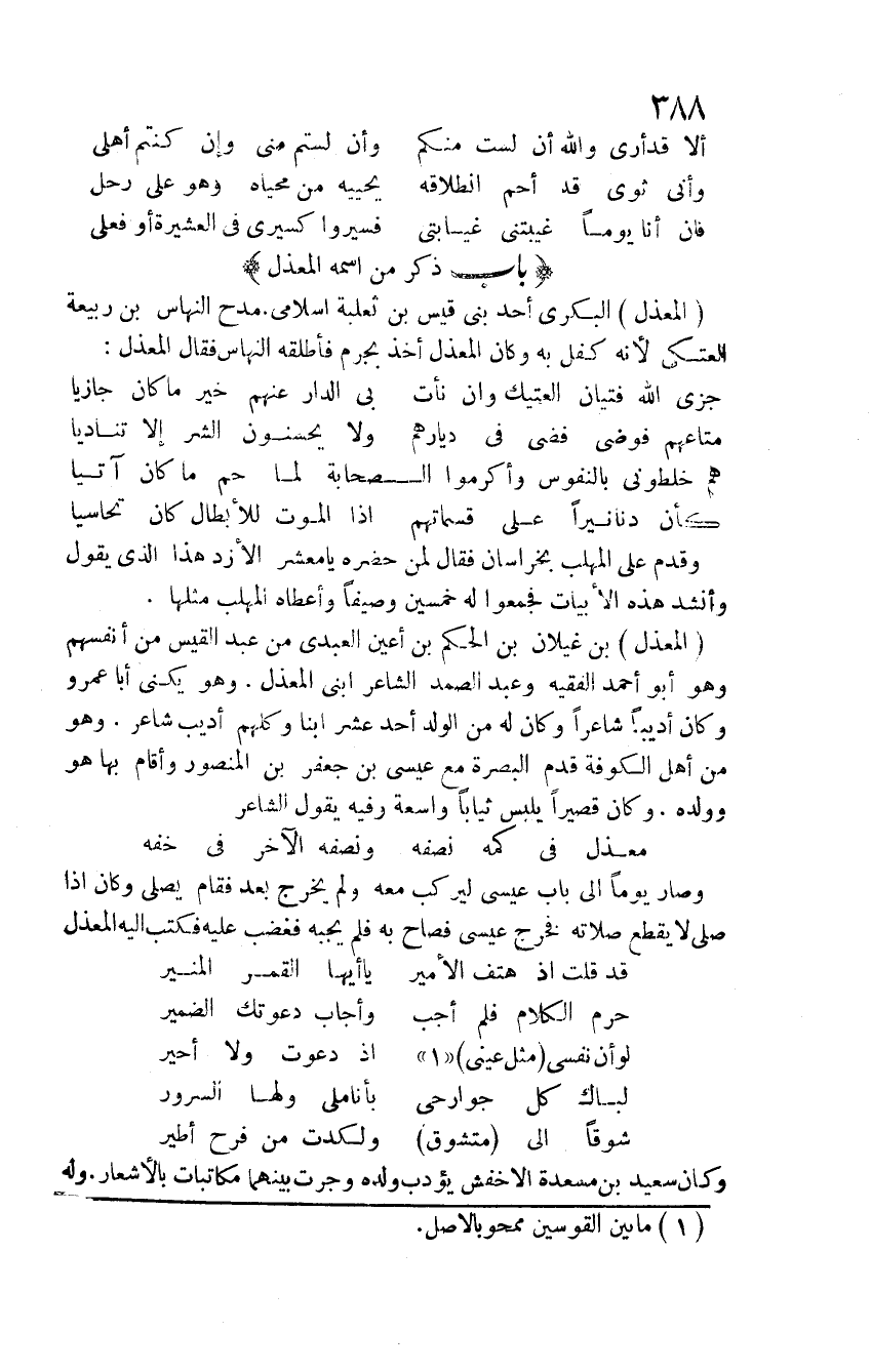باب عيسى ليركب معه ولم يخرج بعد فقام يصلي وكان إذا صلى لا يقطع صلاته فخرج عيسى فصاح به فلم يجبه فغضب عليه فكتب إليه المعذل: