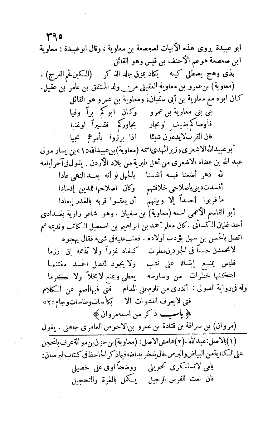 أبو عبيدة يروي هذه الأبيات لصعصة بن معاوية، وقال أبوعبيدة: معاوية بن صعصعة هو عم الأحنف بن قيس وهو القائل: