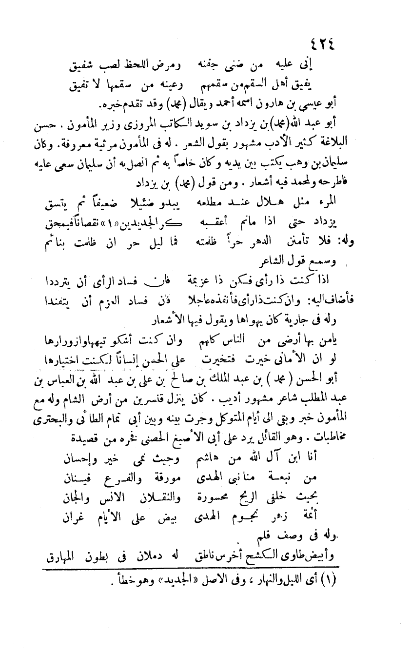 أبو عبد الله محمد بن يزداد بن سويد الكاتب المروزي وزير المأمون. حسن البلاغة كثير الأدب مشهور بقول الشعر. له في المأمون مرثية معروفة. وكان سليمان بن وهب يكتب بين يديه وكان خاصاً به ثم اتصل به أن سليمان سعى عليه فاطرحه ولمحمد فيه أشعار. ومن قول محمد بن يزداد: