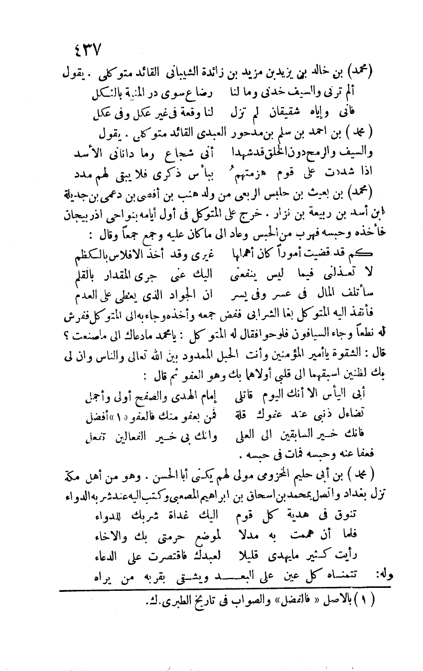 (محمد) بن خالد بن يزيد بن مزيد بن زائدة الشيباني القائد متوكلي. يقول: