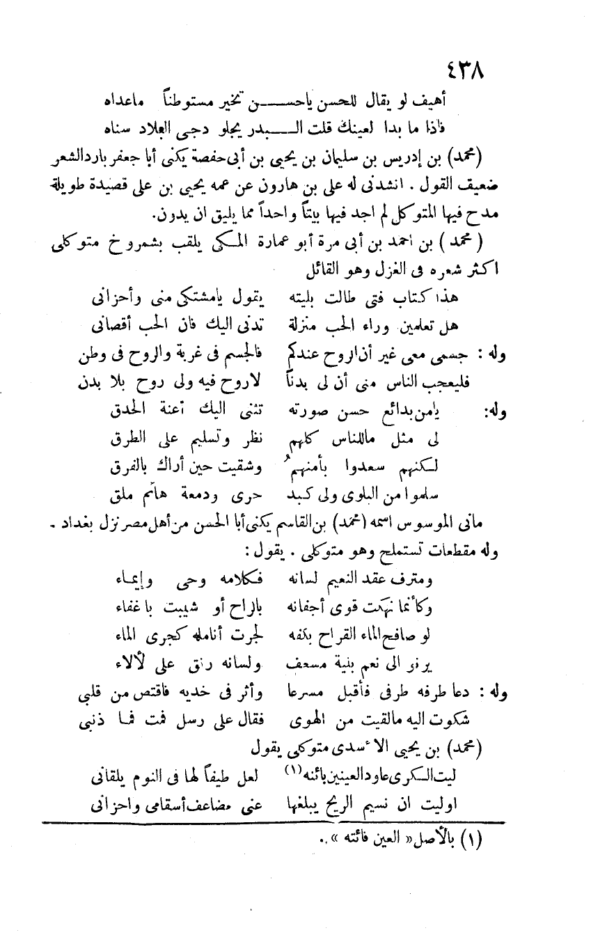 محمد بن يحيى الأسدي متوكلي يقول: