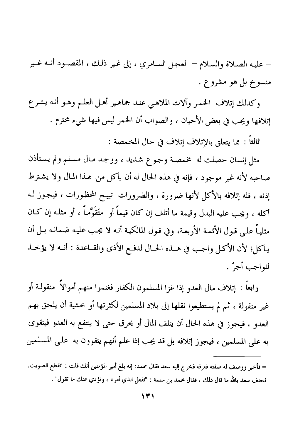 ثالثاً: مما يتعلق بالإتلاف إتلاف في حال المخمصة: