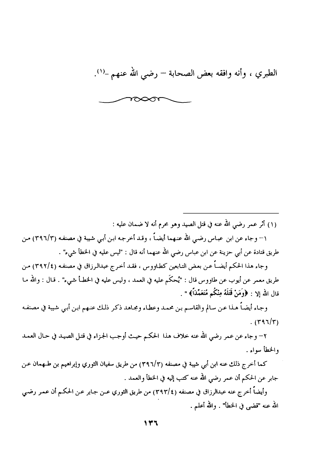 (١) أثر عمر رضى الله عنه في قتل الصيد وهو محرم أنه لا ضمان عليه: