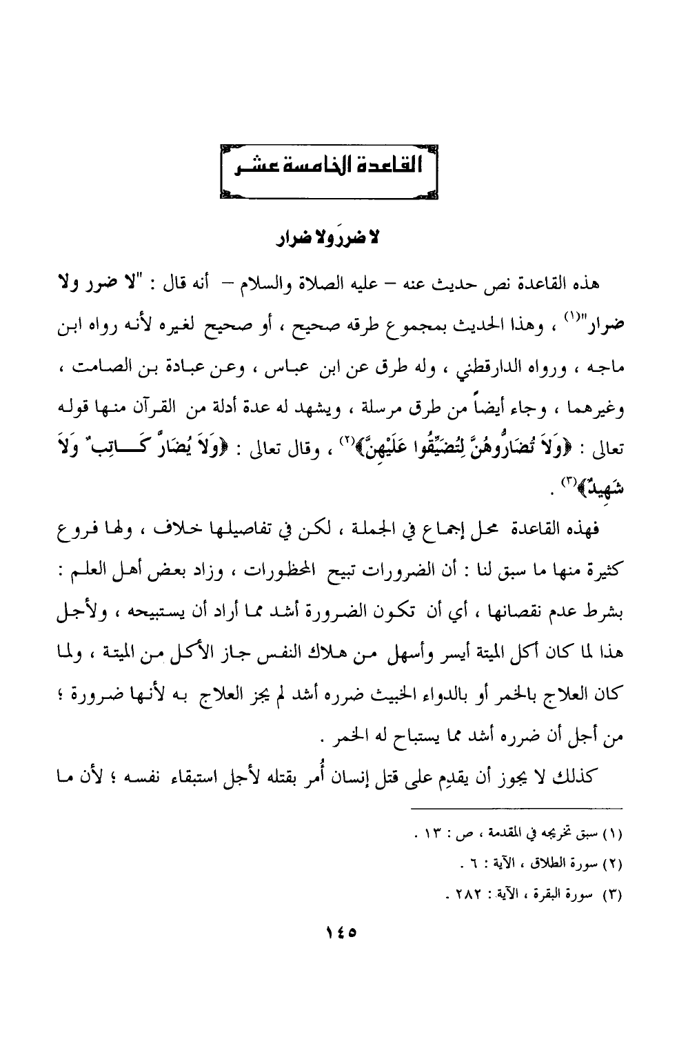 القاعدة الخامسة عشر لا ضرر ولا ضرار