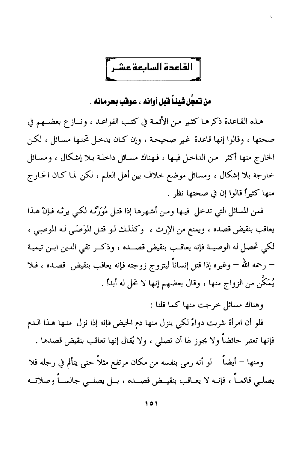 القاعدة السابعة عشر من تعجَّل شيئاً قبل أوانه، عوقب بحرمانه