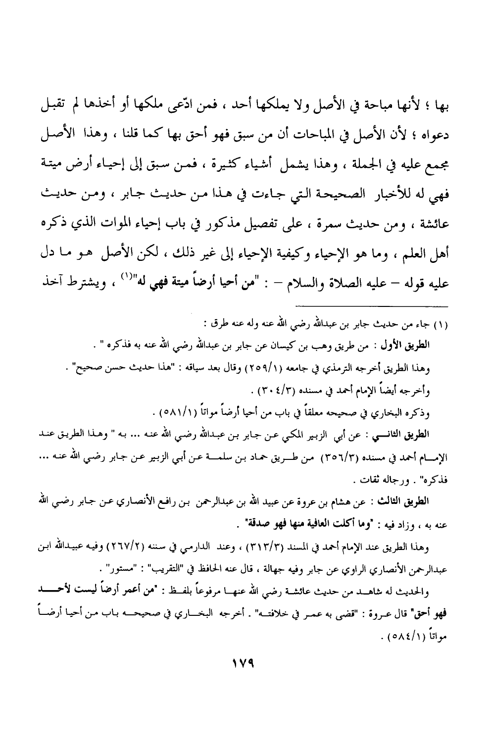 والحديث له شاهد من حديث عائشة رضى الله عنها مرفوعاً بلفظ: "من أعمر أرضاً ليست لأحد فهو أحق" قال عروة: "قضى به عمر في خلافته". أخرجه البخاري ما في صحيحه باب من أحيا أرضاً مواتاً (١/ ٥٨٤).