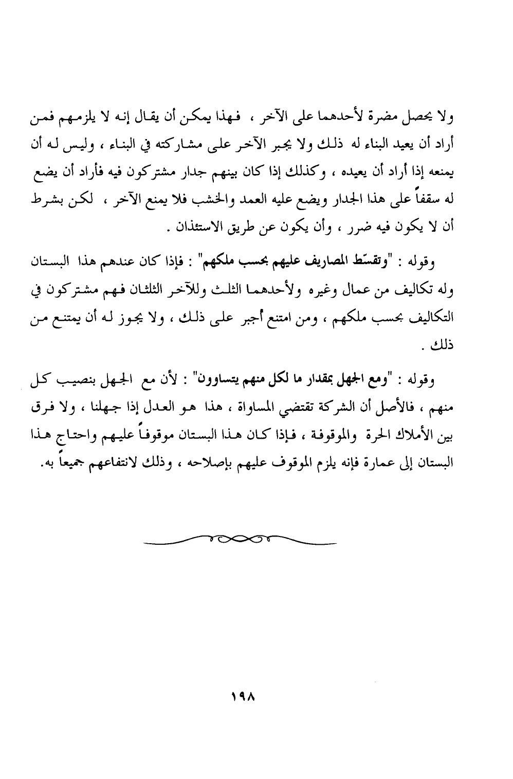 وقوله: "ومع الجهل بمقدار ما لكل منهم يتساوون": لأن مع الجهل بنصيب كل منهم، فالأصل أن الشركة تقتضي المساواة، هذا هو العدل إذا جهلنا، ولا فرق بين الأملاك الحرة والموقوفة، فإذا كان هذا البستان موقوفاً عليهم واحتاج هذا البستان إلى عمارة فإنه يلزم الموقوف عليهم بإصلاحه، وذلك لانتفاعهم جميعاً به.