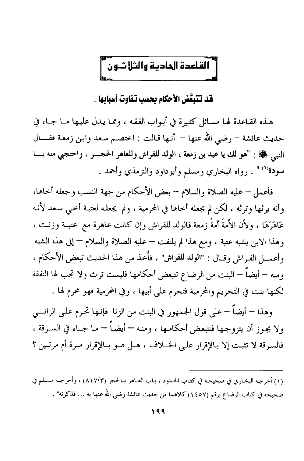 القاعدة الحادية والثلاثون قد تتبعّض الأحكام بحسب تفاوت أسبابها