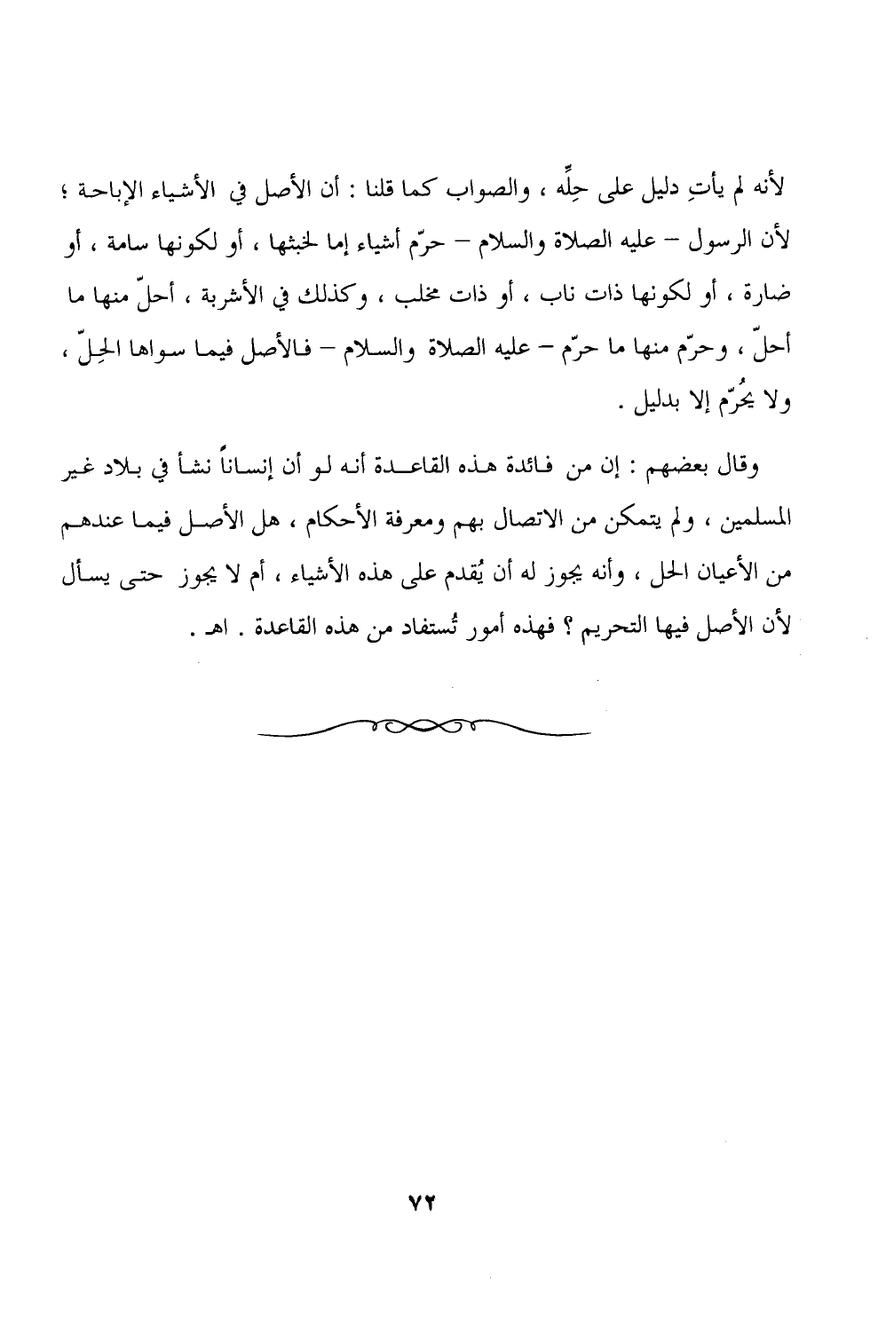وقال بعضهم: إن من فائدة هذه القاعدة أنه لو أن إنسانًا نشأ في بلاد غير المسلمين، ولم يتمكن من الاتصال بهم ومعرفة الأحكام، هل الأصل فيما عندهم من الأعيان الحل، وأنه يجوز له أن يُقدم على هذه الأشياء، أم لا يجوز حتى يسأل لأن الأصل فيها التحريم؟ فهذه أمور تُستفاد من هذه القاعدة. اهـ.