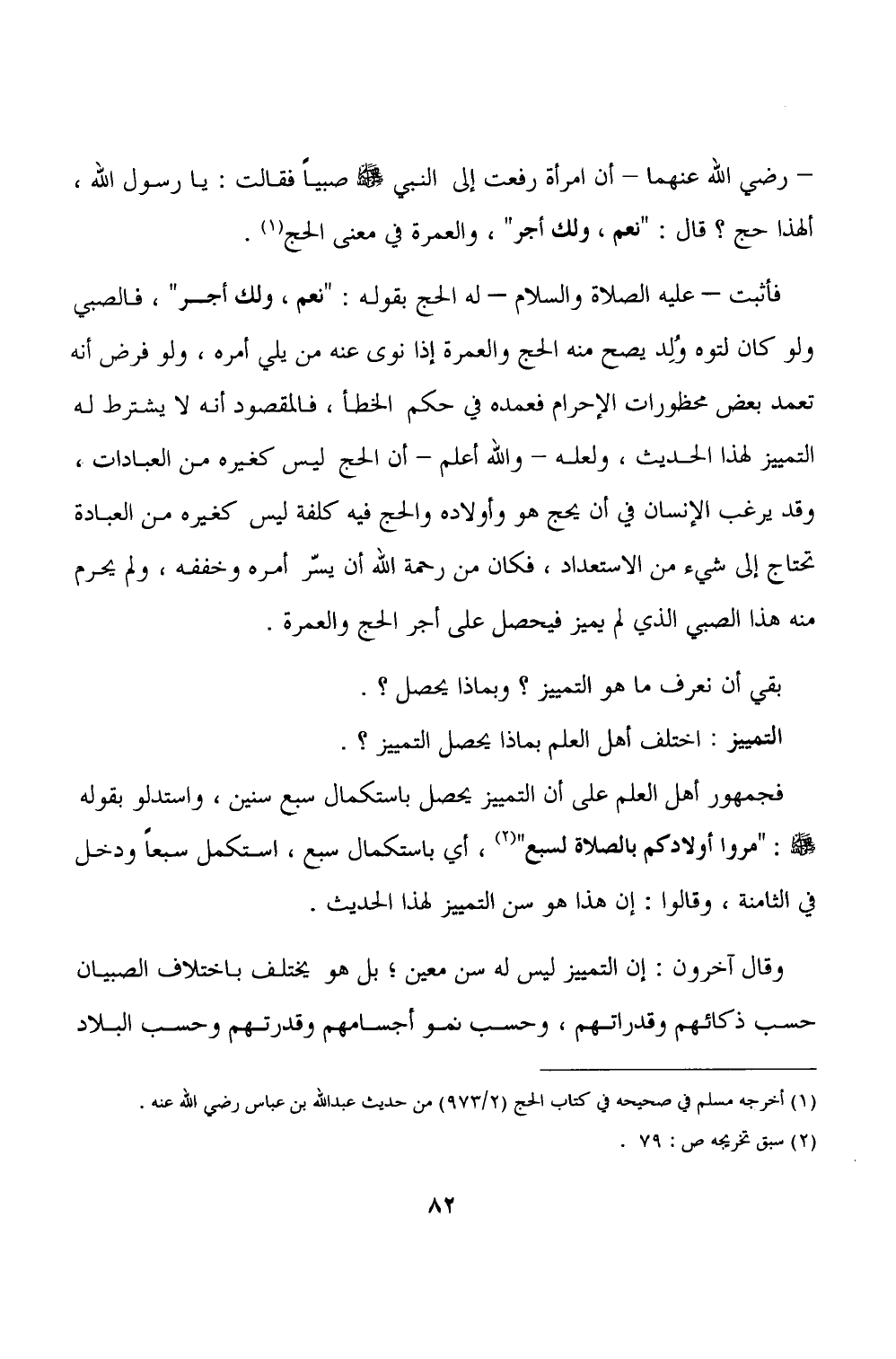 فجمهور أهل العلم على أن التمييز يحصل باستكمال سبع سنين، واستدلو بقوله - صلى الله عليه وسلم -: "مروا أولادكم بالصلاة لسبع" (٢)، أي باستكمال سبع، استكمل سبعًا ودخل في الثامنة، وقالوا: إن هذا هو سن التمييز لهذا الحديث.
