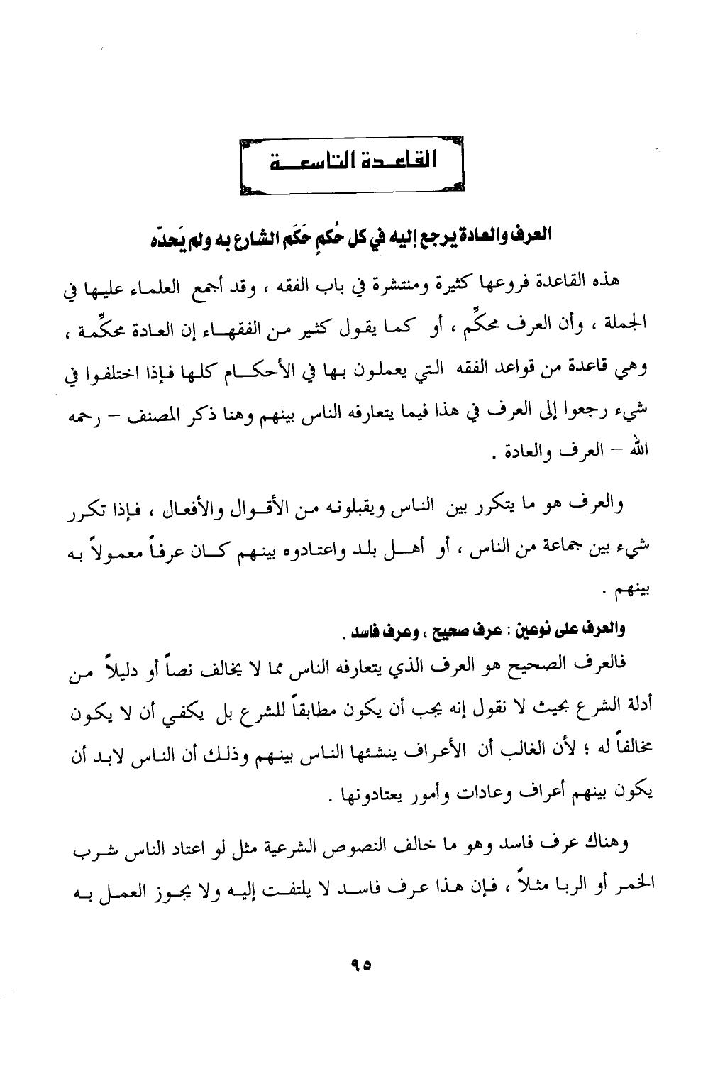 القاعدة التاسعة العرف والعادة يرجع إليه في كل حُكمٍ حَكَم الشارع به ولم يَحدّه