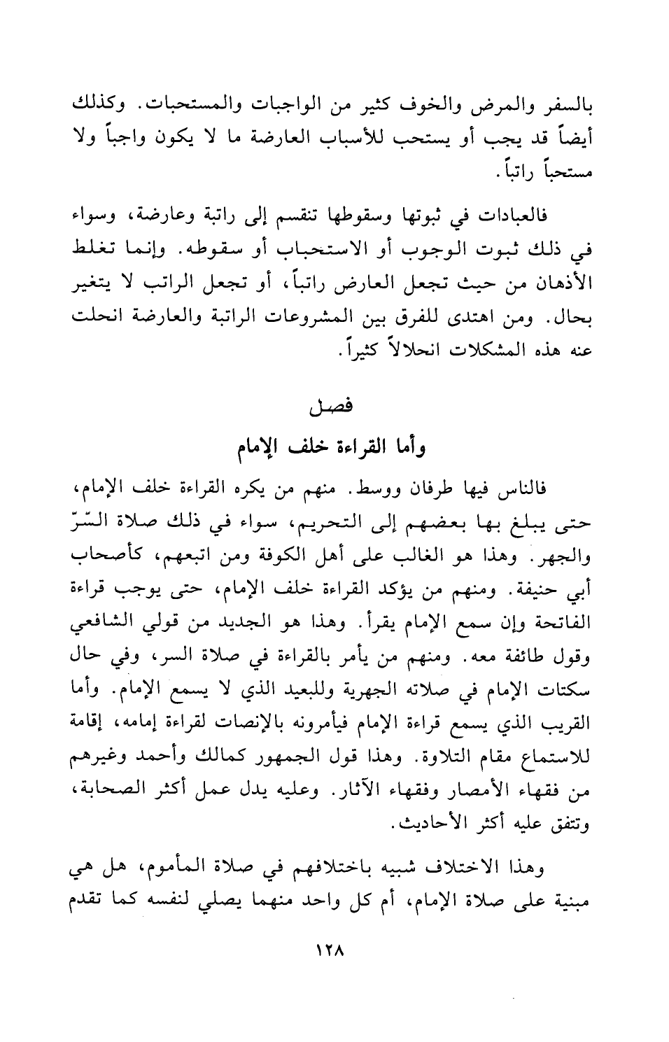 بِالسَّفَرِ وَالْمَرَضِ وَالْخَوْفِ كَثِيرٌ مِنَ الْوَاجِبَاتِ وَالْمُسْتَحَبَّاتِ، وَكَذَلِكَ أَيْضًا قَدْ يَجِبُ أَوْ يُسْتَحَبُّ لِلْأَسْبَابِ الْعَارِضَةِ مَا لَا يَكُونُ وَاجِبًا وَلَا مُسْتَحَبًّا رَاتِبًا.
