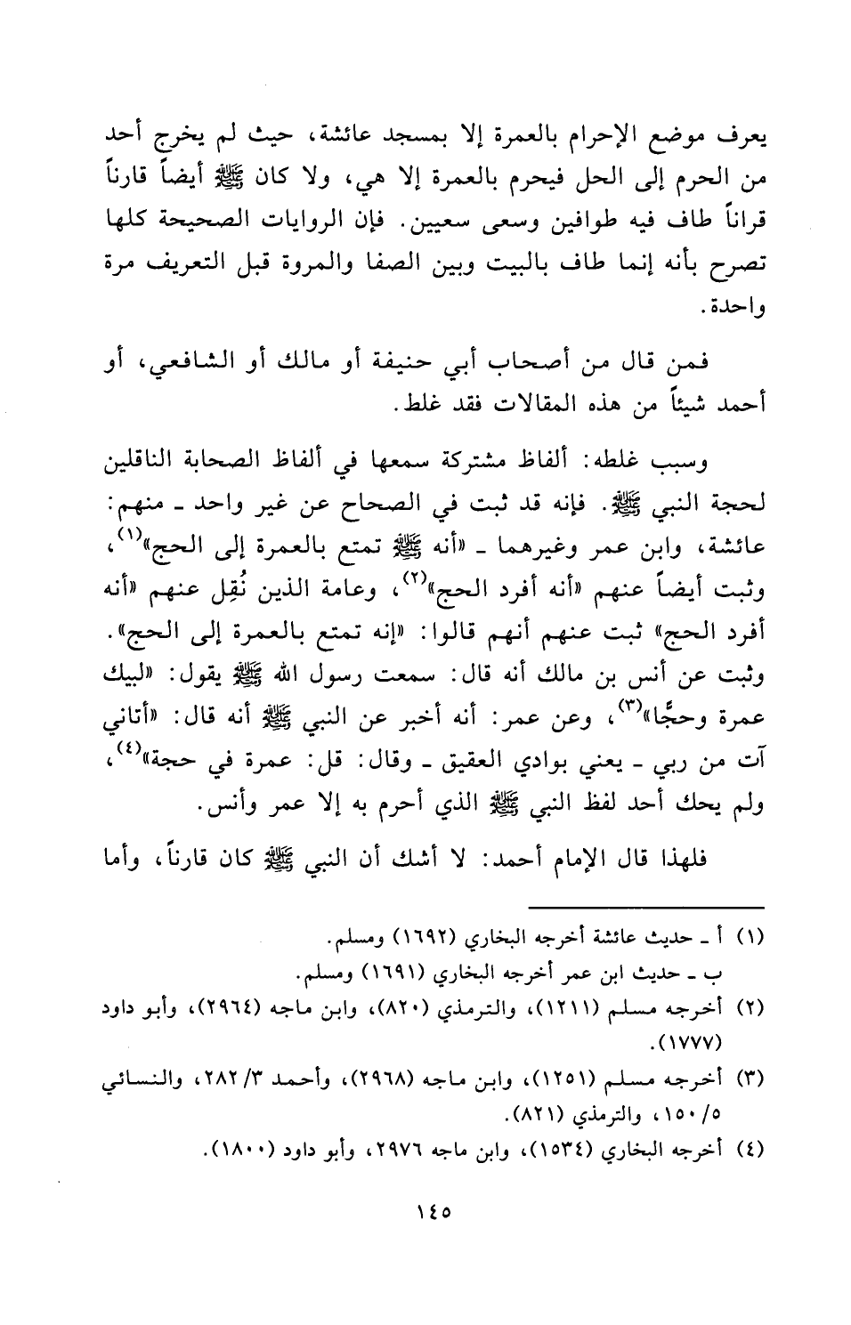 فَلِهَذَا قَالَ الْإِمَامُ أَحْمَدُ: لَا أَشُكُّ أَنَّ النَّبِيَّ - صَلَّى اللَّهُ عَلَيْهِ وَسَلَّمَ - كَانَ قَارِنًا، وَأَمَّا