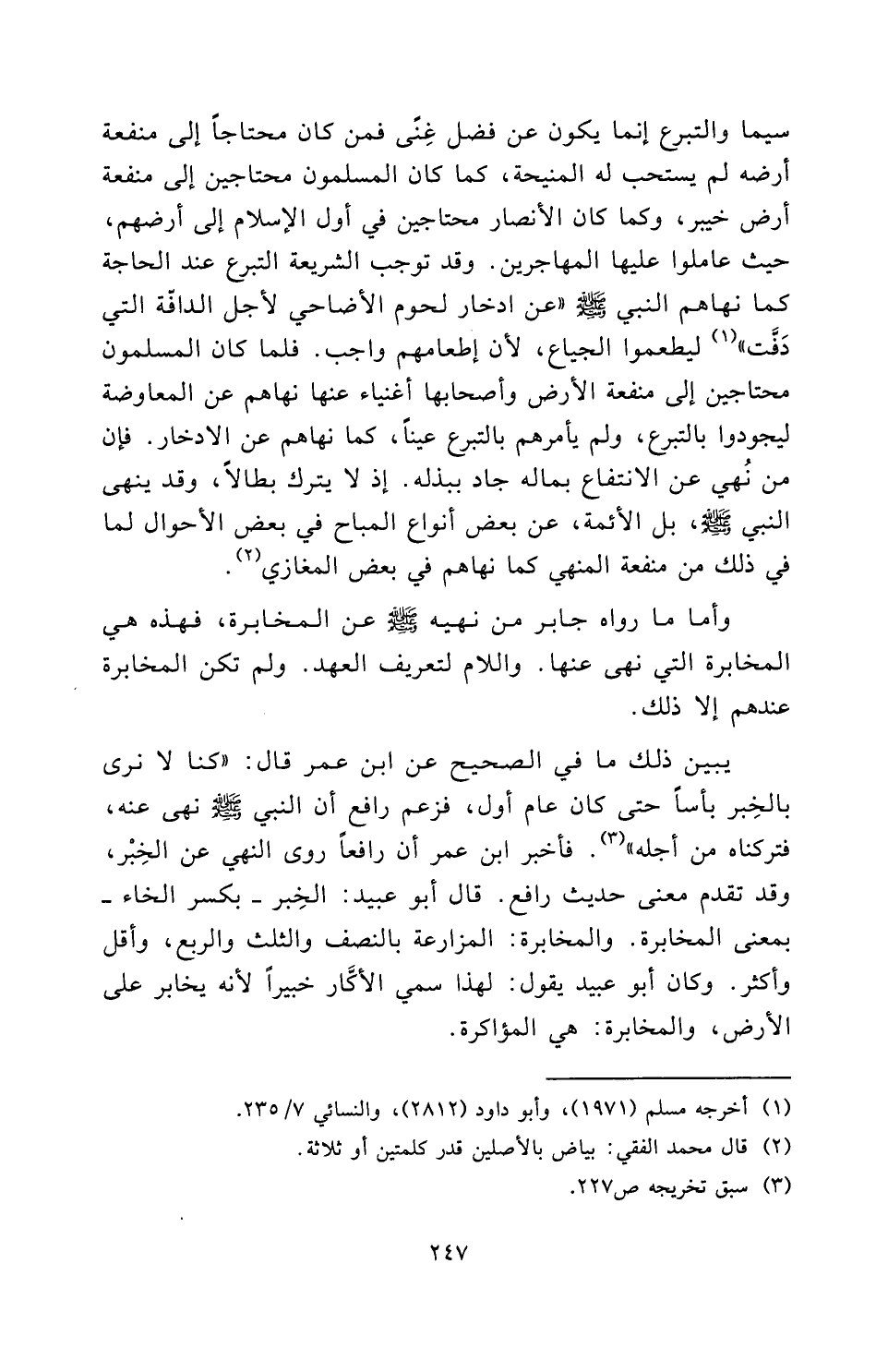 وَأَمَّا مَا رَوَاهُ جابر مِنْ نَهْيِهِ - صَلَّى اللَّهُ عَلَيْهِ وَسَلَّمَ - عَنِ الْمُخَابَرَةِ، فَهَذِهِ هِيَ الْمُخَابَرَةُ الَّتِي نَهَى عَنْهَا. وَاللَّامُ لِتَعْرِيفِ الْعَهْدِ. وَلَمْ تَكُنِ الْمُخَابَرَةُ عِنْدَهُمْ إِلَّا ذَلِكَ.