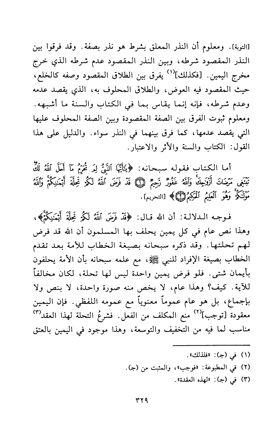 أَمَّا الْكِتَابُ، فَقَوْلُهُ سُبْحَانَهُ: {يَاأَيُّهَا النَّبِيُّ لِمَ تُحَرِّمُ مَا أَحَلَّ اللَّهُ لَكَ تَبْتَغِي مَرْضَاةَ أَزْوَاجِكَ وَاللَّهُ غَفُورٌ رَحِيمٌ - قَدْ فَرَضَ اللَّهُ لَكُمْ تَحِلَّةَ أَيْمَانِكُمْ وَاللَّهُ مَوْلَاكُمْ وَهُوَ الْعَلِيمُ الْحَكِيمُ} [التحريم: 1 - 2] [التَّحْرِيمِ] .