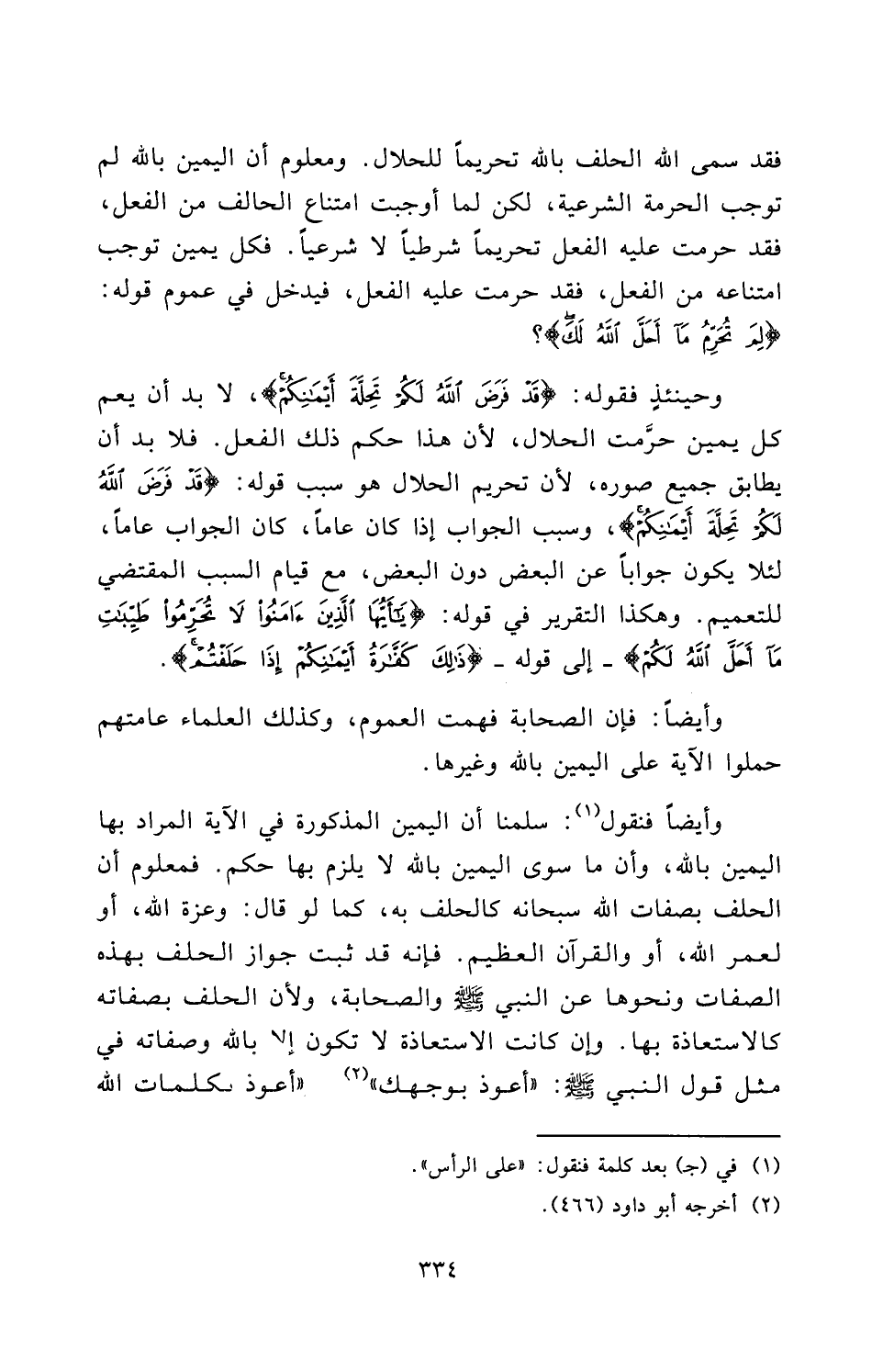 فَقَدْ سَمَّى اللَّهُ الْحَلِفَ بِاللَّهِ تَحْرِيمًا لِلْحَلَالِ. وَمَعْلُومٌ أَنَّ الْيَمِينَ بِاللَّهِ لَمْ تُوجِبِ الْحُرْمَةَ الشَّرْعِيَّةَ، لَكِنْ لَمَّا أَوْجَبَتِ امْتِنَاعَ الْحَالِفِ مِنَ الْفِعْلِ، فَقَدْ حَرَّمَتْ عَلَيْهِ الْفِعْلَ تَحْرِيمًا شَرْطِيًّا لَا شَرْعِيًّا. فَكُلُّ يَمِينٍ تُوجِبُ امْتِنَاعَهُ مِنَ الْفِعْلِ، فَقَدْ حَرَّمَتْ عَلَيْهِ الْفِعْلَ، فَيَدْخُلُ فِي عُمُومِ قَوْلِهِ: {لِمَ تُحَرِّمُ مَا أَحَلَّ اللَّهُ لَكَ} [التحريم: 1] .