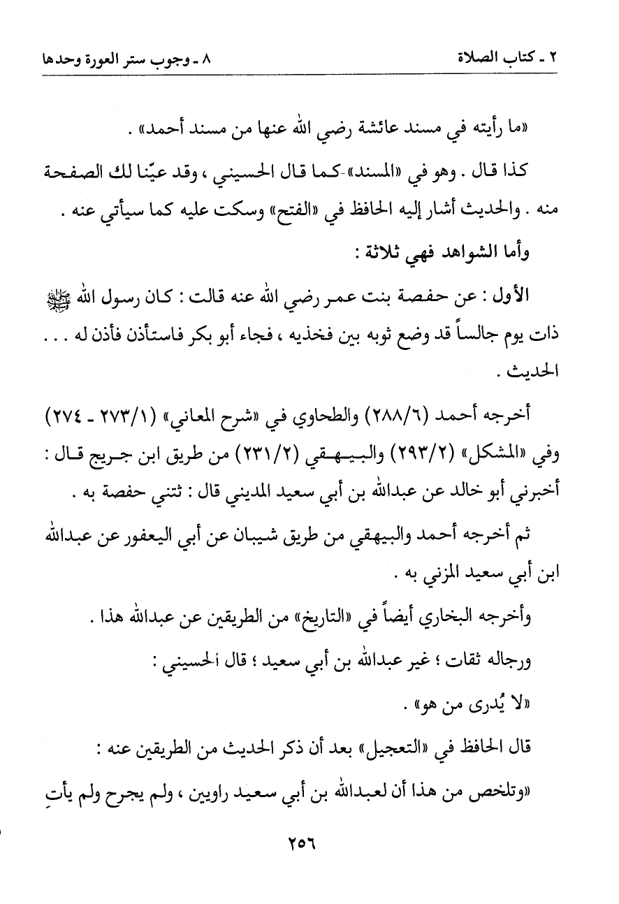أخرجه أحمد والطحاوي في (شرح المعاني) وفي (المشكل) والبيهقي من طريق ابن جريج قال: أخبرني أبو خالد عن عبد الله بن أبي سعيد المديني قال: ثتني حفصة به