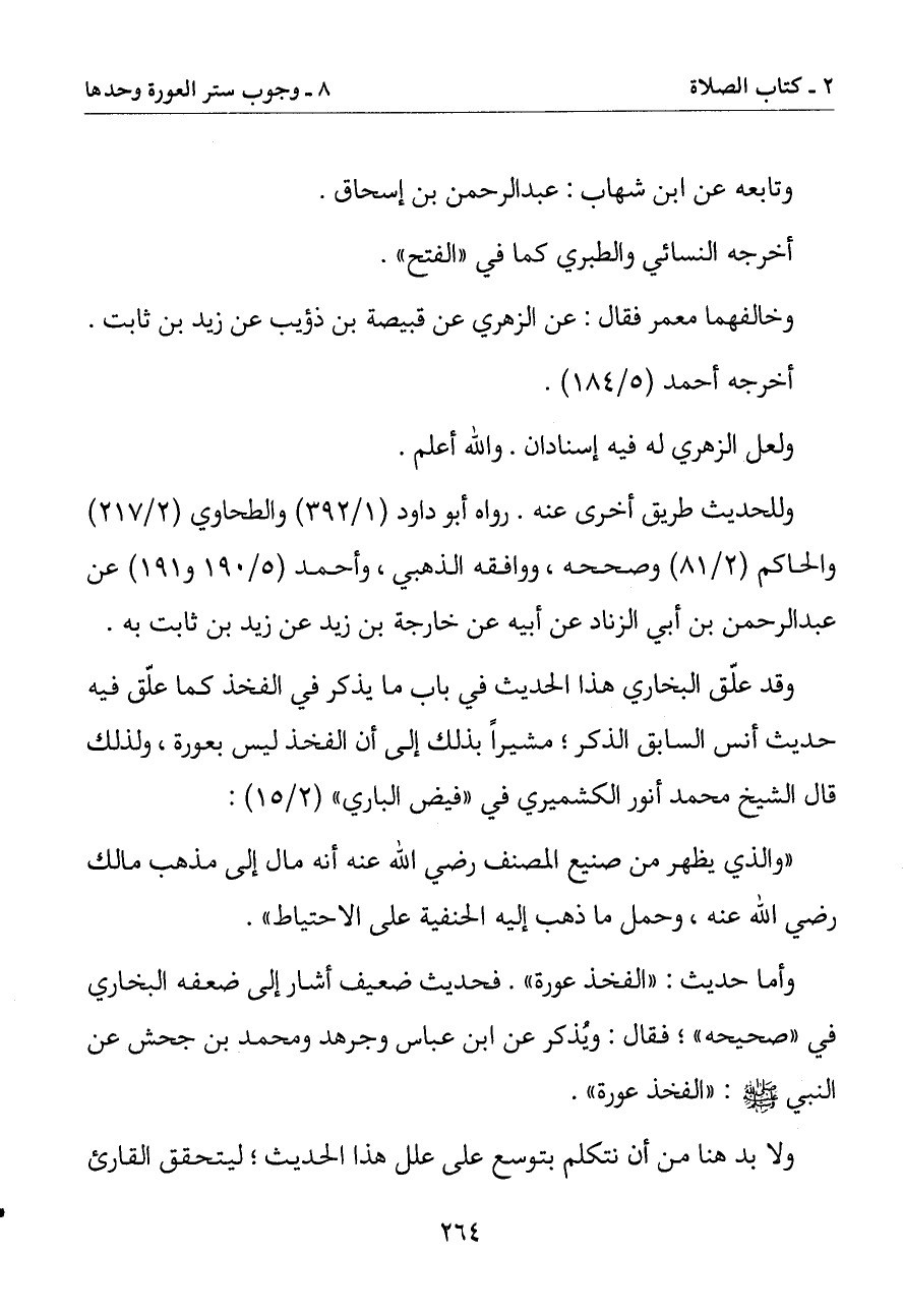 وللحديث طريق أخرى عنه. رواه أبو داود والطحاوي والحاكم وصححه ووافقه الذهبي وأحمد عن عبد الرحمن بن أبي الزناد عن أبيه عن خارجة بن زيد عن زيد بن ثابت به