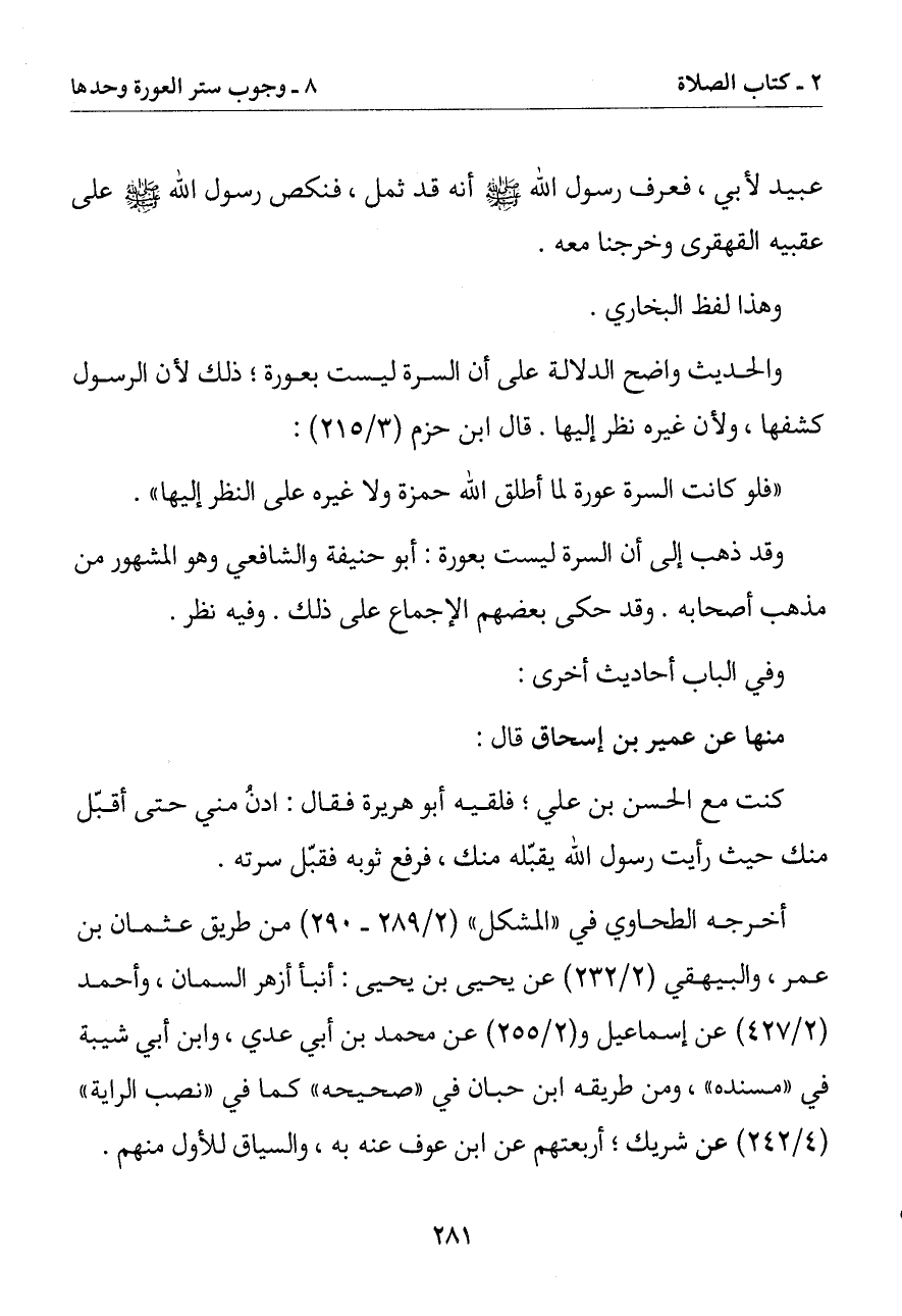 (فلو كانت السرة عورة لما أطلق الله حمزة ولا غيره على النظر إليها)