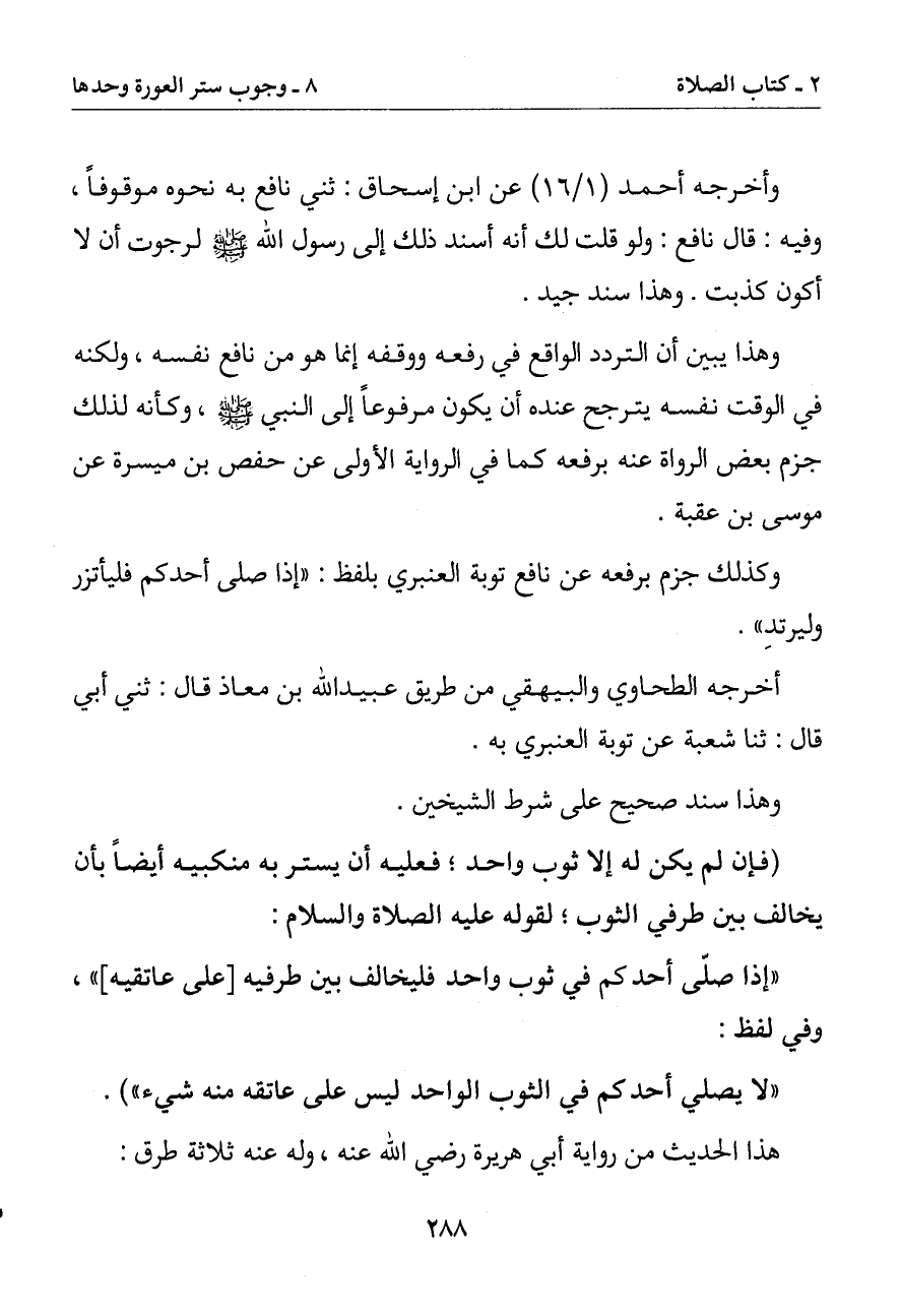 (لايصلي أحدكم في الثوب الواحد ليس على عاتقه منه شيء) هذا الحديث من رواية أبي هريرة رضي الله عنه وله عنه ثلاثة طرق: