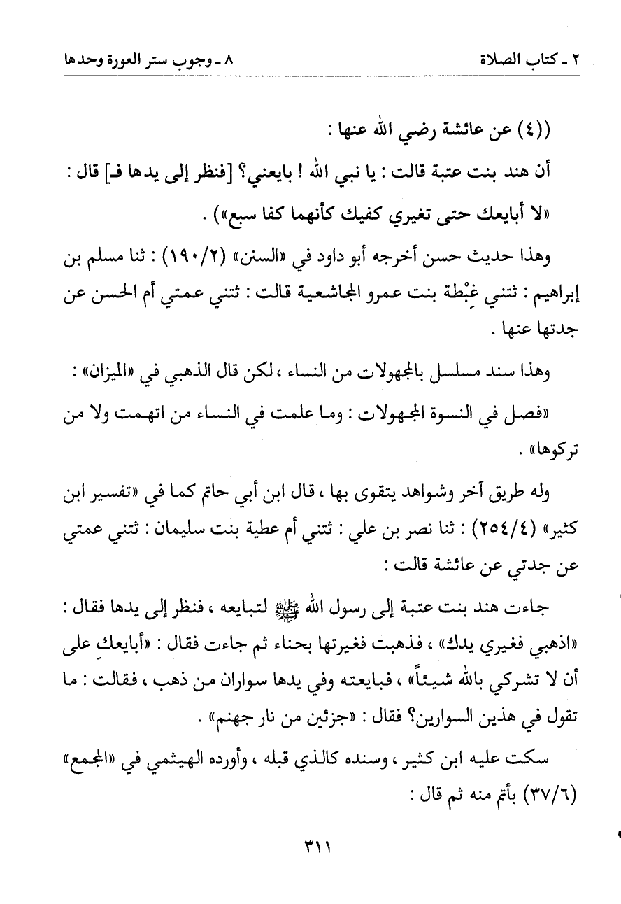 وهذا حديث حسن أخرجه أبو داود في (السنن): ثنا مسلم بن إبراهيم: ثتني غبطة بنت عمرو المجاشيعة قالت: ثتني عمتي أم الحسن عن جدتها عنها