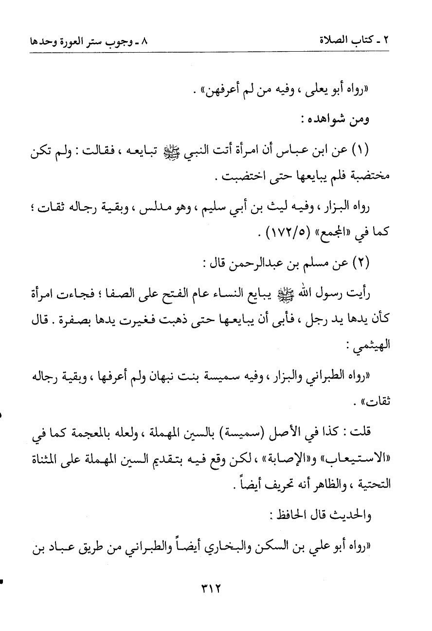 (1) عن ابن عباس أن امرأة أتت النبي صلى الله عليه وسلم تبايعه فقالت ولم تكن مختضبة فلم يبايعها حتى اختضبت