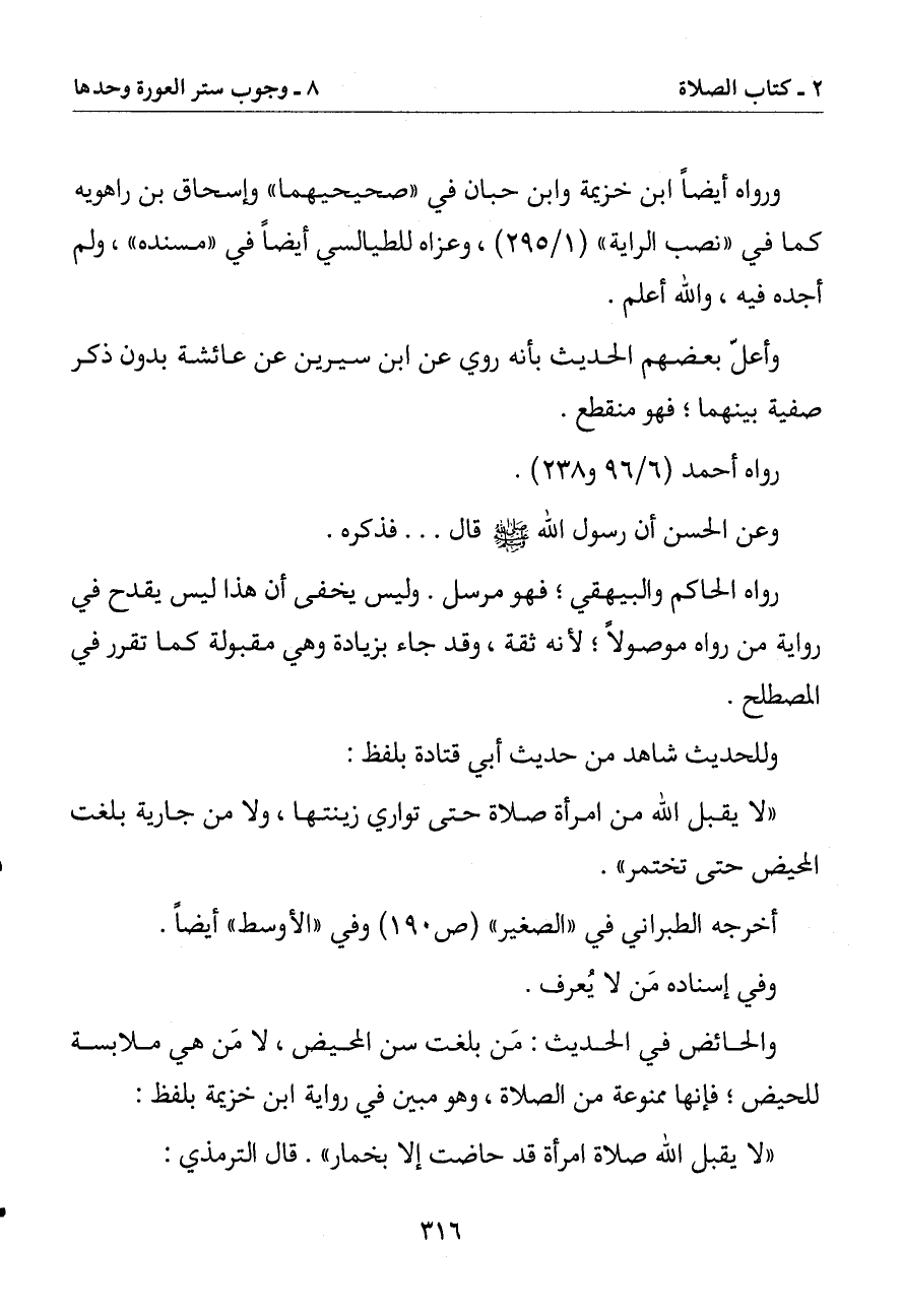 (لا يقبل الله صلاة امرأة قد حاضت إلا بخمار). قال الترمذي: